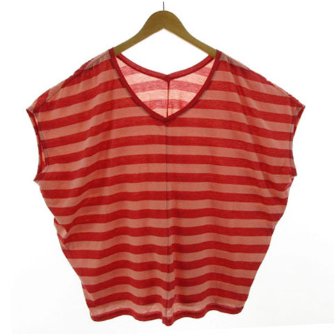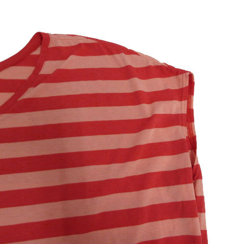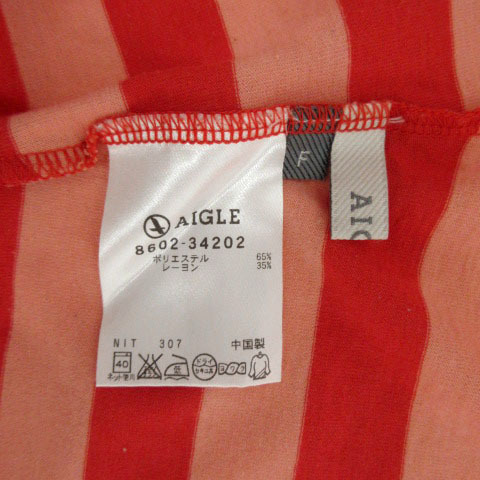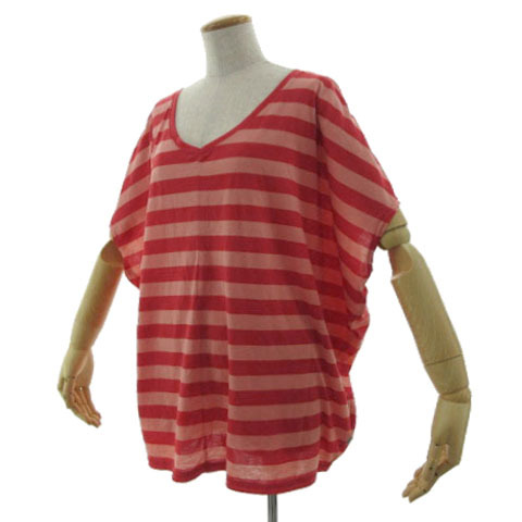 エーグル AIGLE カットソー Vネック ワイドシルエット ボーダー レッド 赤 ピンク系 F レディース