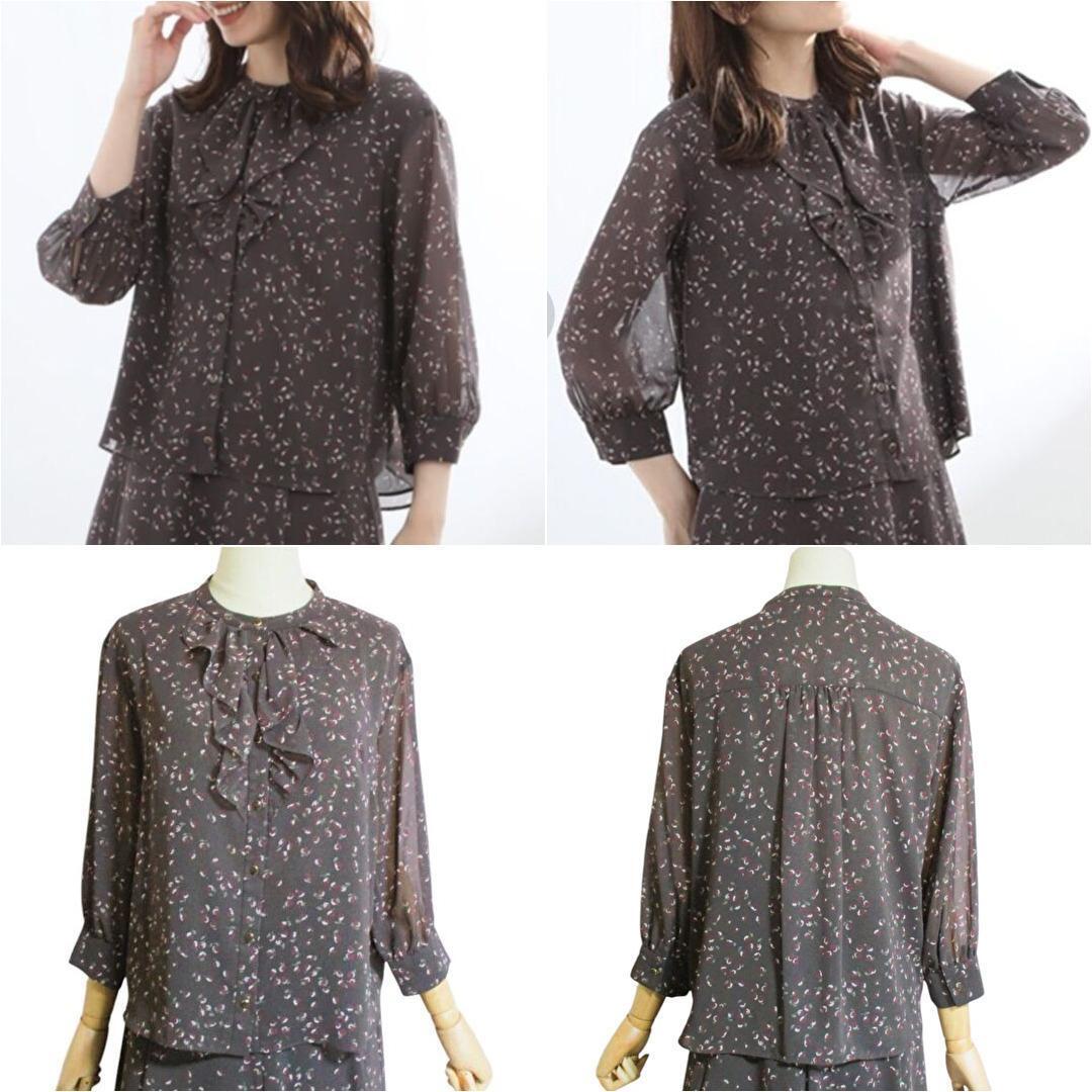 リフレクト Reflectの 洗える コツキ柄ラッフルブラウスとフレアスカート