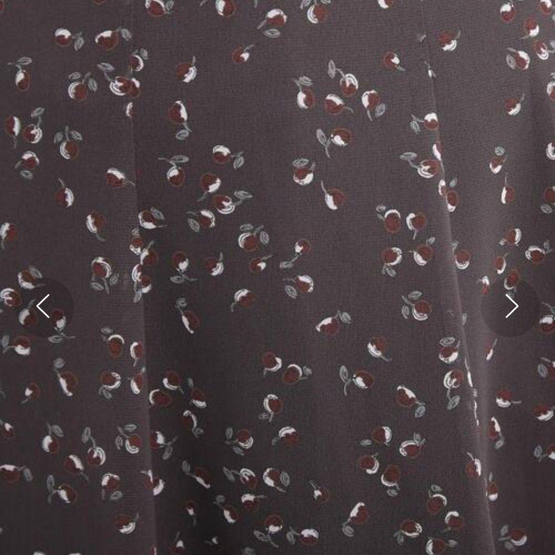 ヒペリカム(丸くて可愛い赤い実をつける植物)のようなモチーフをコツキ風に描かれたプリントのブラウスとスカートです