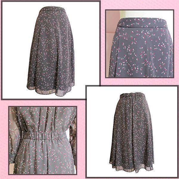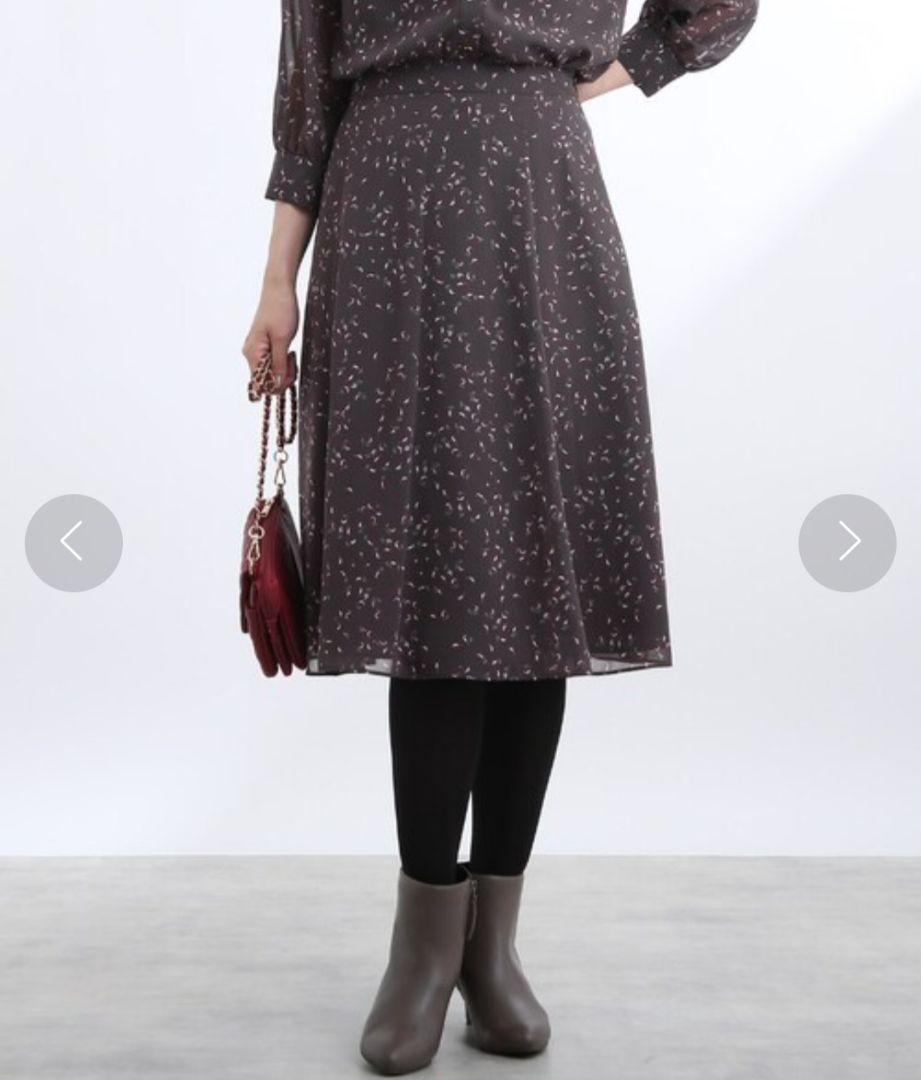 スカートは縦の剥ぎラインを利用した美しいシルエットで、美脚に見える嬉しいフリュイド感のあるフレアスカートです