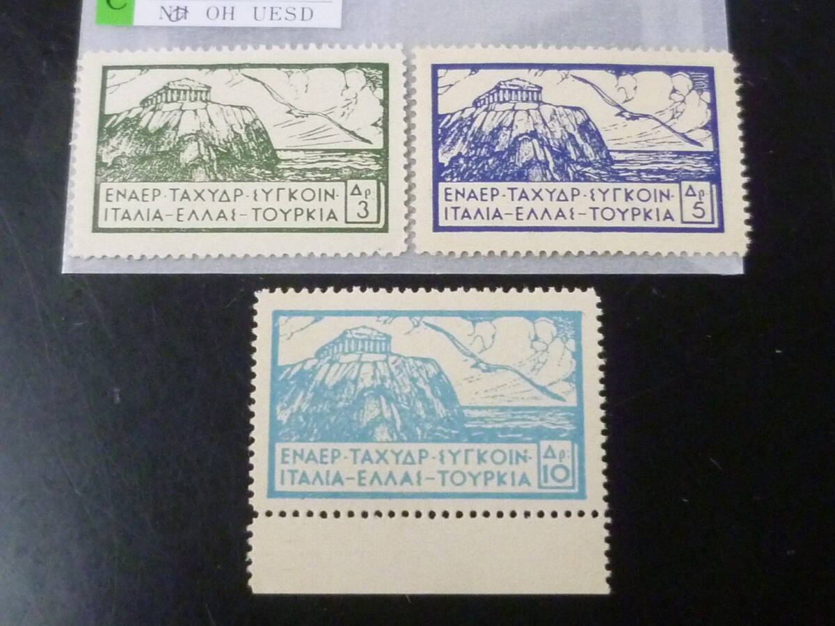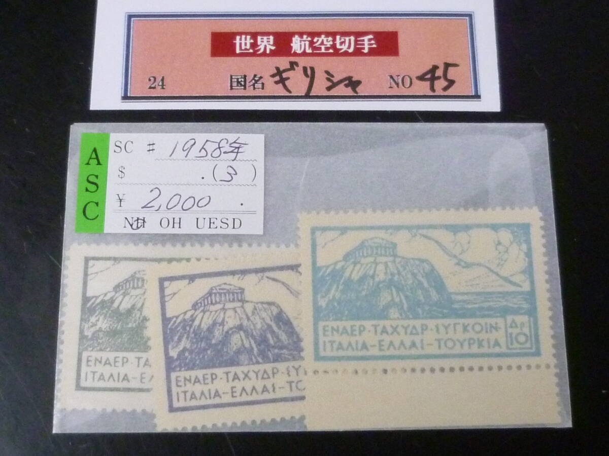 25 P G国№45 航空 ギリシャ切手 1958年 計3種 未使用NH・VF ※スコットカタログ未掲載