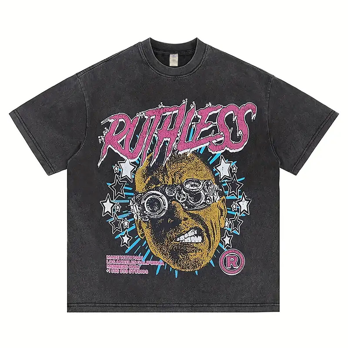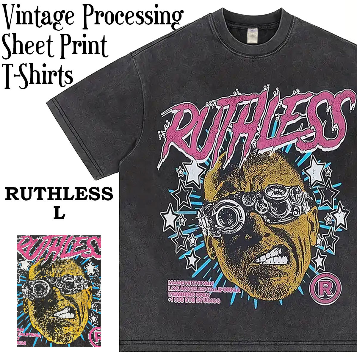 RUTHLESS ヴィンテージ加工 Tシャツ シートプリント コットン100% ユニセックス 男女兼用 Y2K ブラック Lサイズ