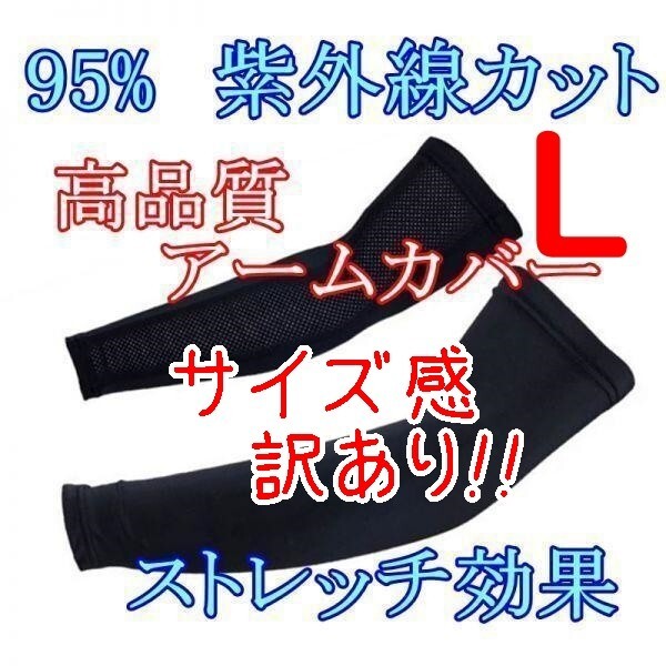 【訳あり】アームカバー【黒/L】ストレッチ メッシュ 男女兼用 95% UVカット 吸汗 速乾 ずれ落ちない♪冷感 紫外線 運転 スポーツ 自転車