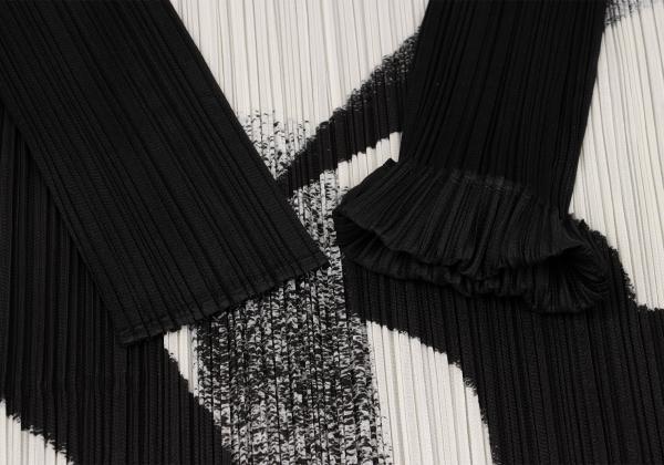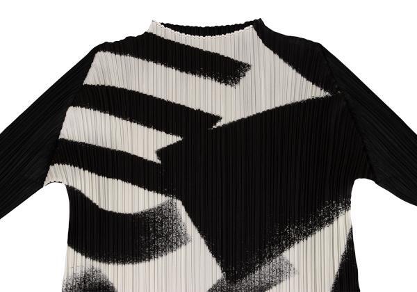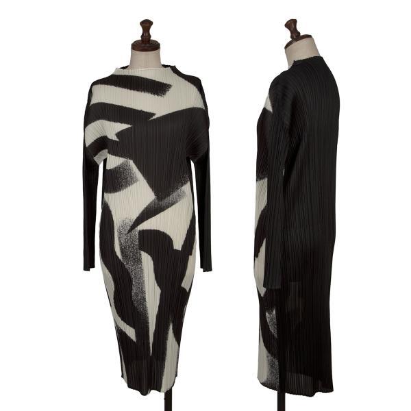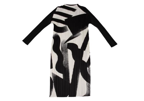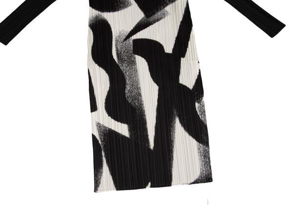 プリーツプリーズPLEATS PLEASE グラフィックプリント長袖ワンピース 黒オフ3 |