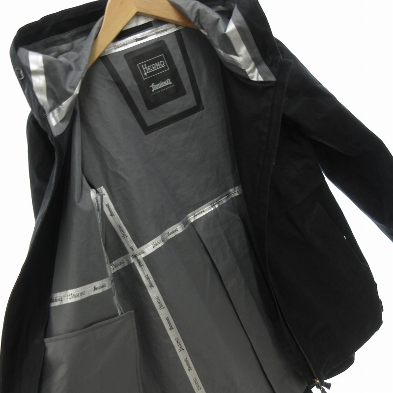 ヘルノ HERNO リネン フーデッドジャケット ブルゾン ダブルジップ 麻 38 M 黒 ブラック GC028DL /FT メンズ
