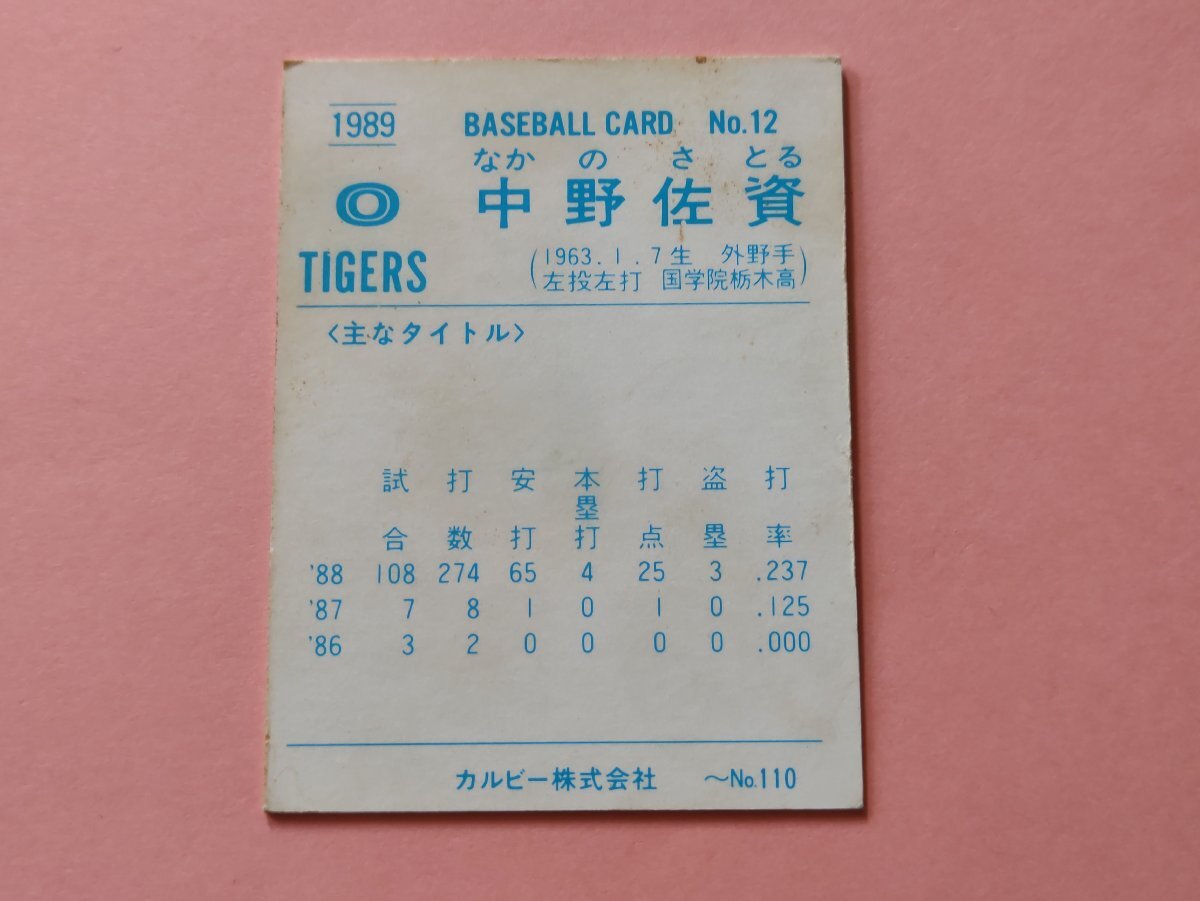 中野佐資 阪神タイガース '89プロ野球カード カルビー