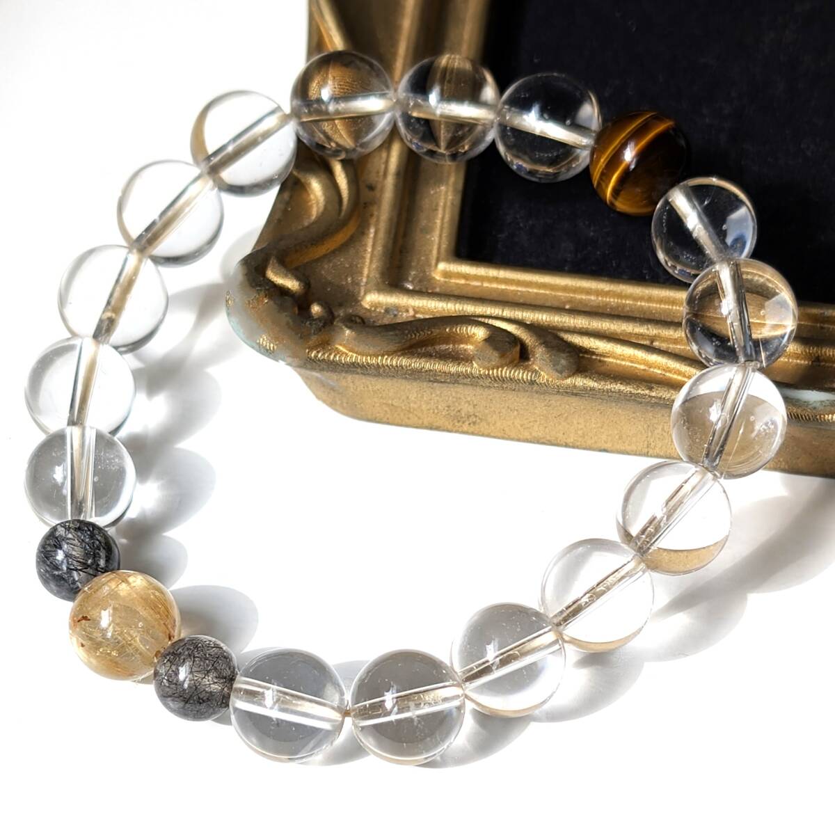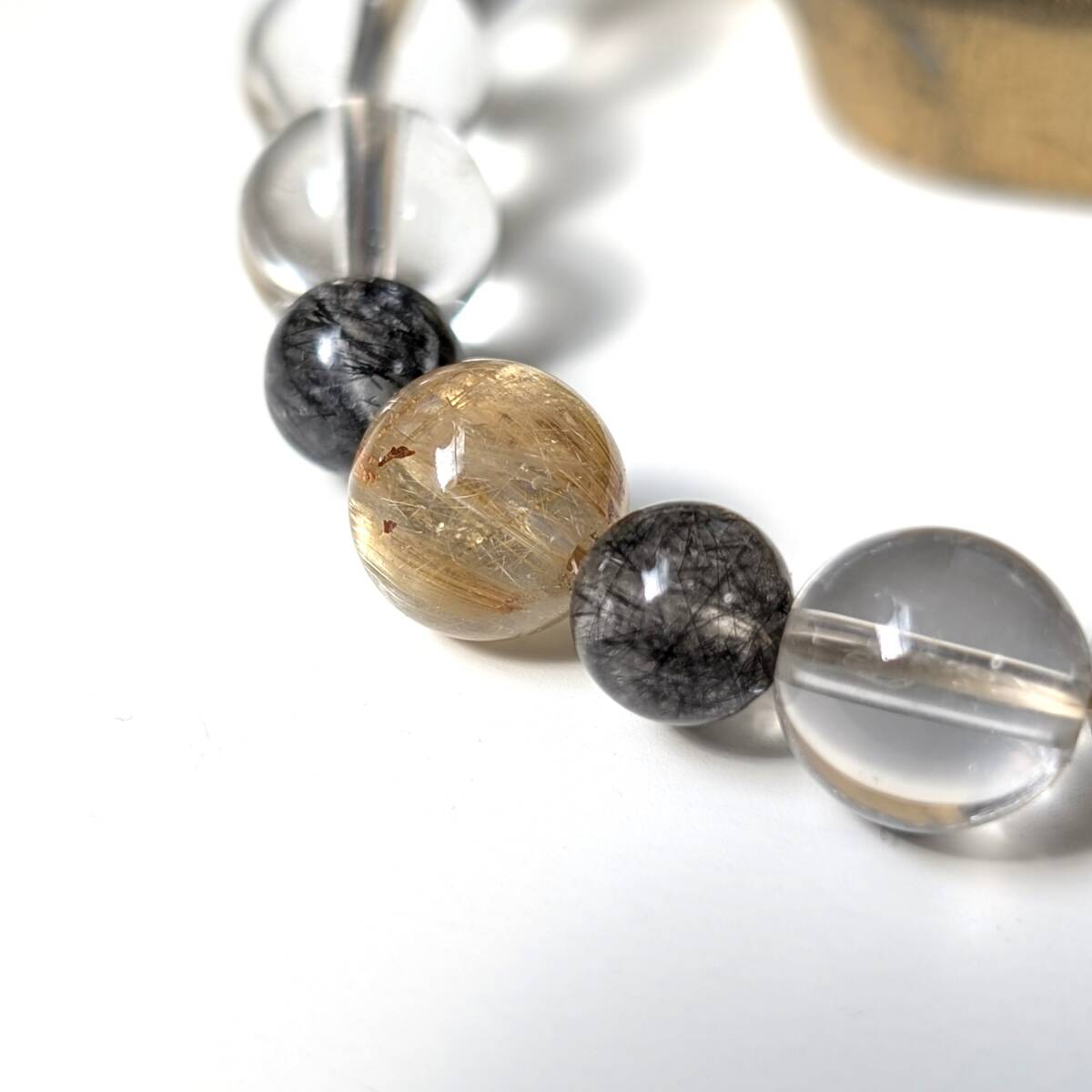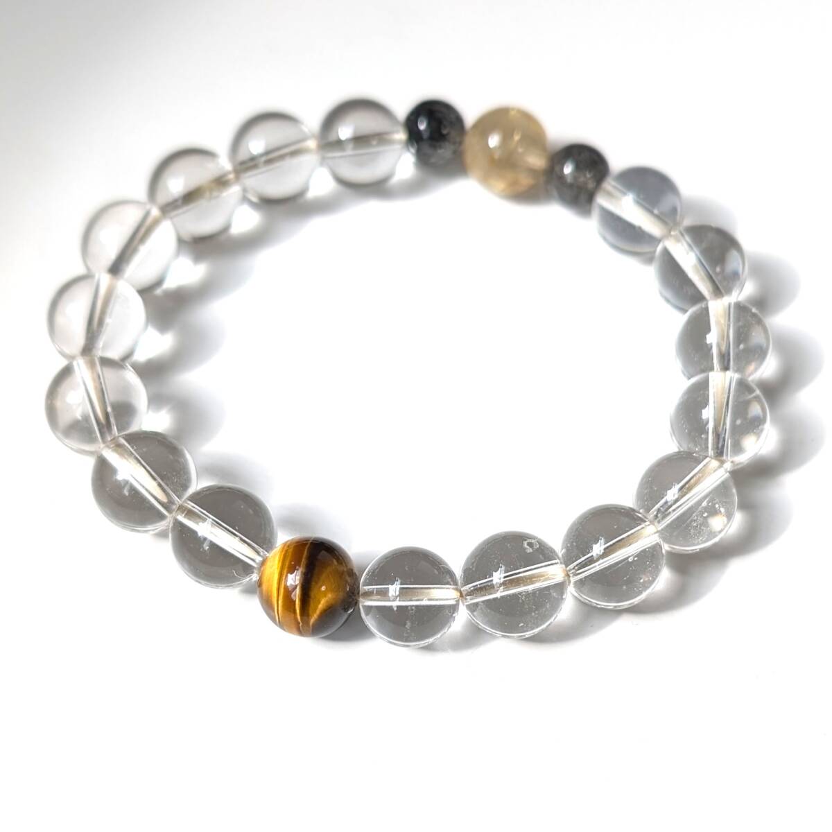 四種パワーストーン 数珠 タイチンルチルクォーツ タイガーアイ 水晶 トルマリンインクォーツ ブレスレット 金運 仕事運 効果抜群 お守り