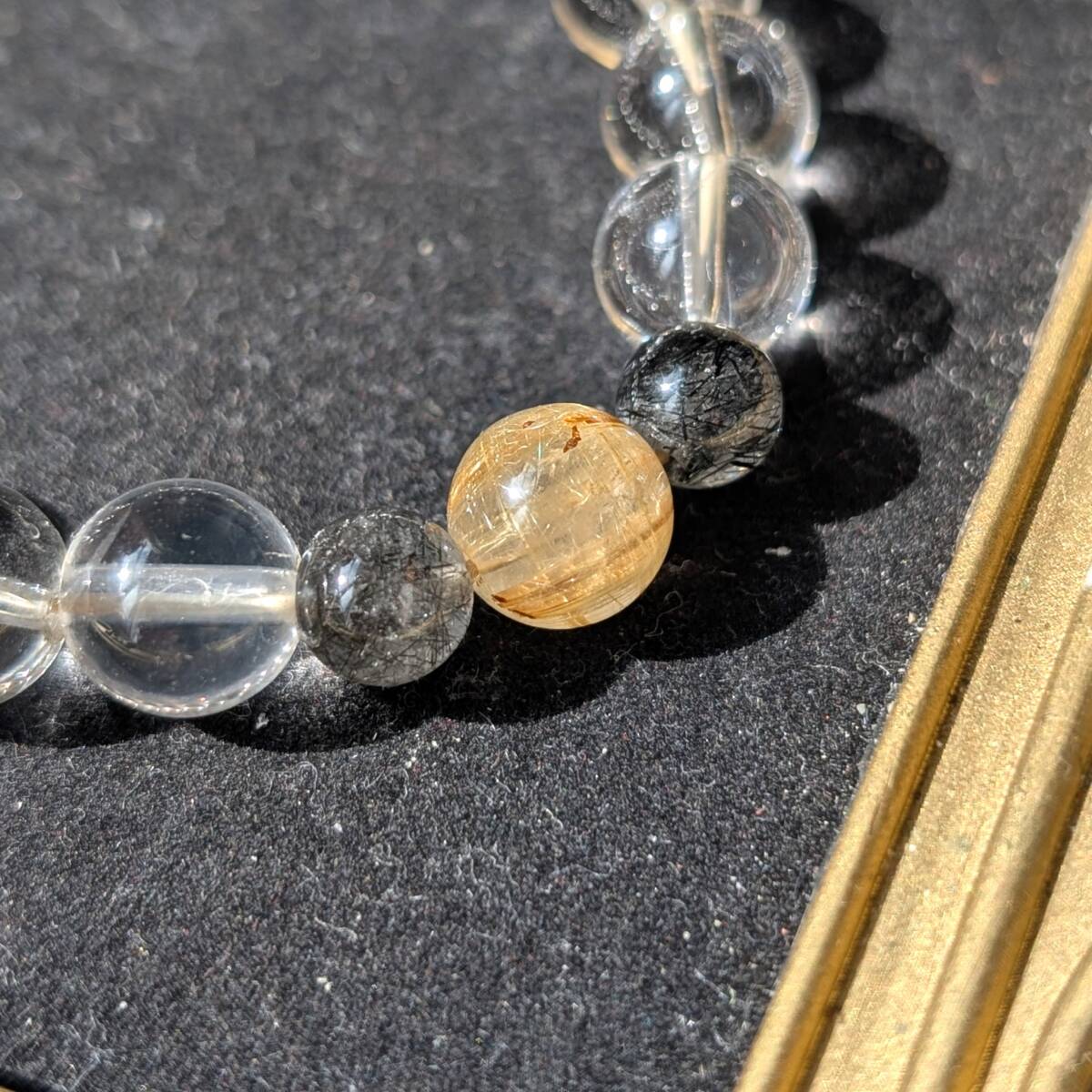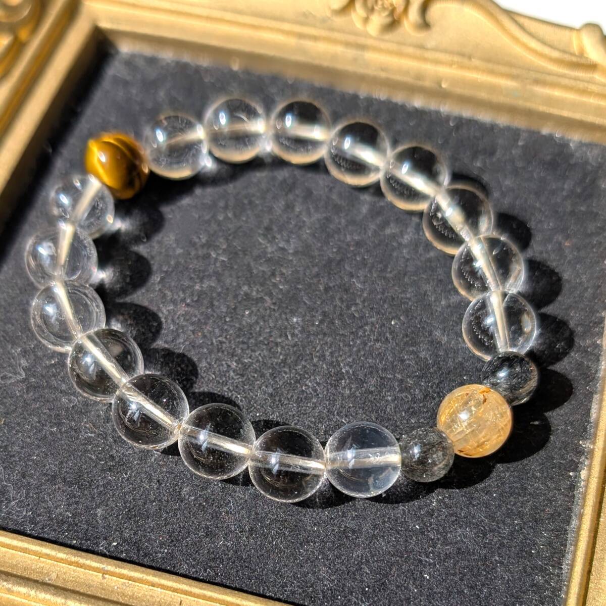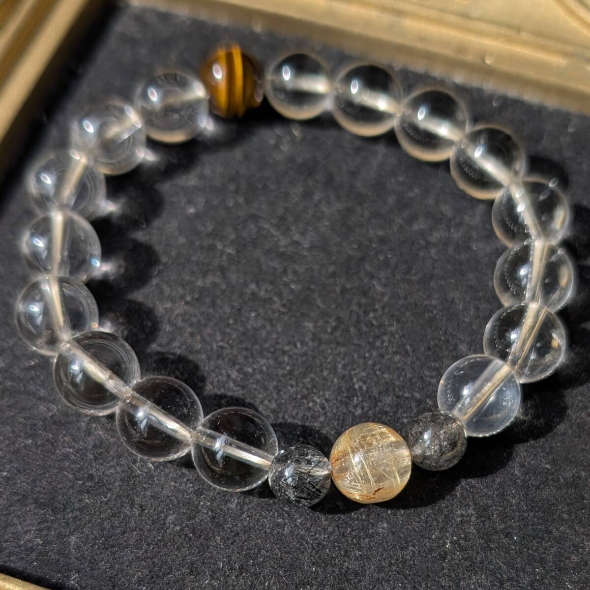四種パワーストーン 数珠 タイチンルチルクォーツ タイガーアイ 水晶 トルマリンインクォーツ ブレスレット 金運 仕事運 効果抜群 お守り