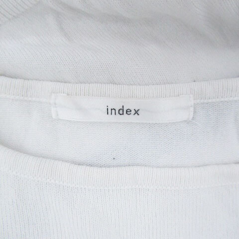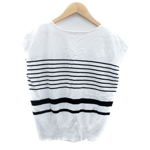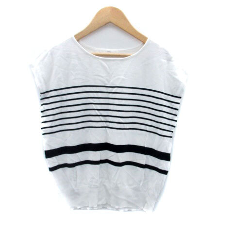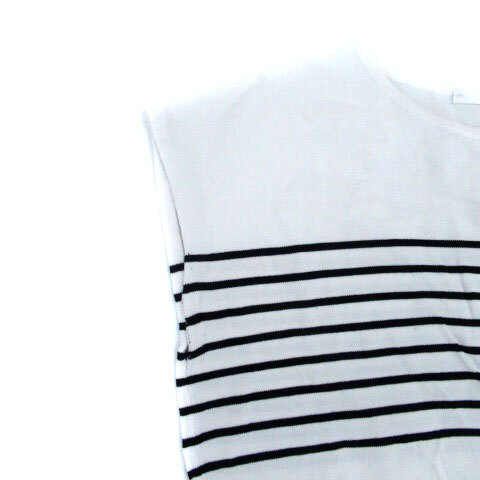 インデックス INDEX ニット カットソー ラウンドネック フレンチスリーブ ボーダー柄 L オフホワイト 黒 ブラック /HO21 レディース