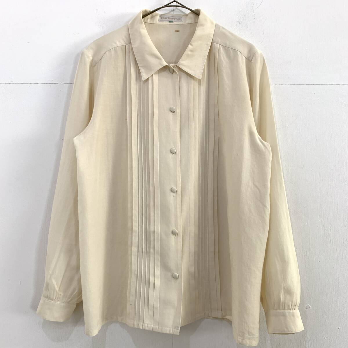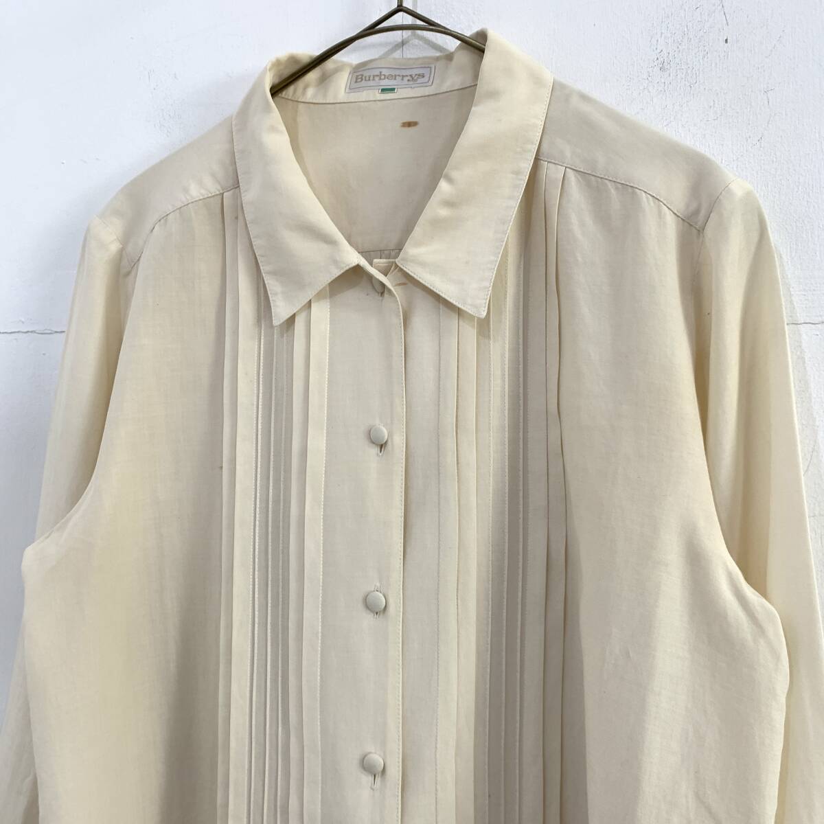 ☆Burberrys オールドバーバリー Vintage 絹×綿 シルク×コットン ピンタック 長袖シャツ ブラウス サイズ9【レターパックライト郵送可】C