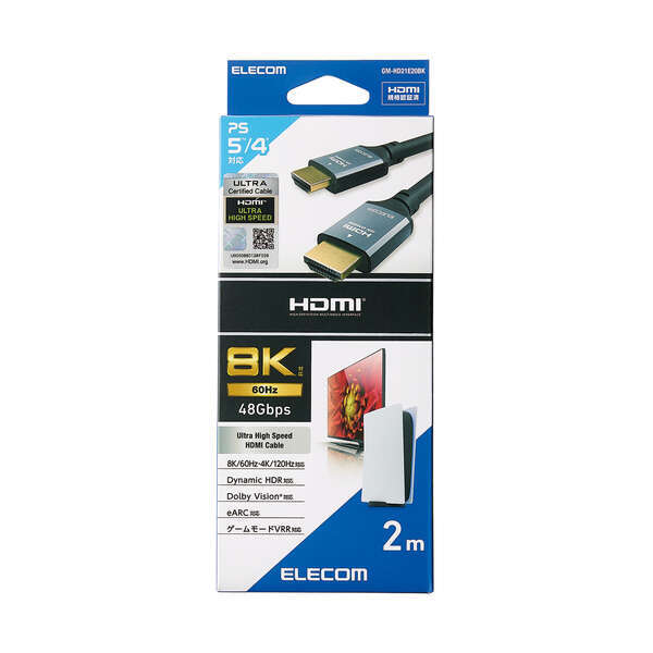 | ●最大8K/60Hzの解像度に対応した、 認証済みのウルトラハイスピードHDMIケーブルです。 HDMI出力端子を搭載したゲーム機などの接続におすすめです | |