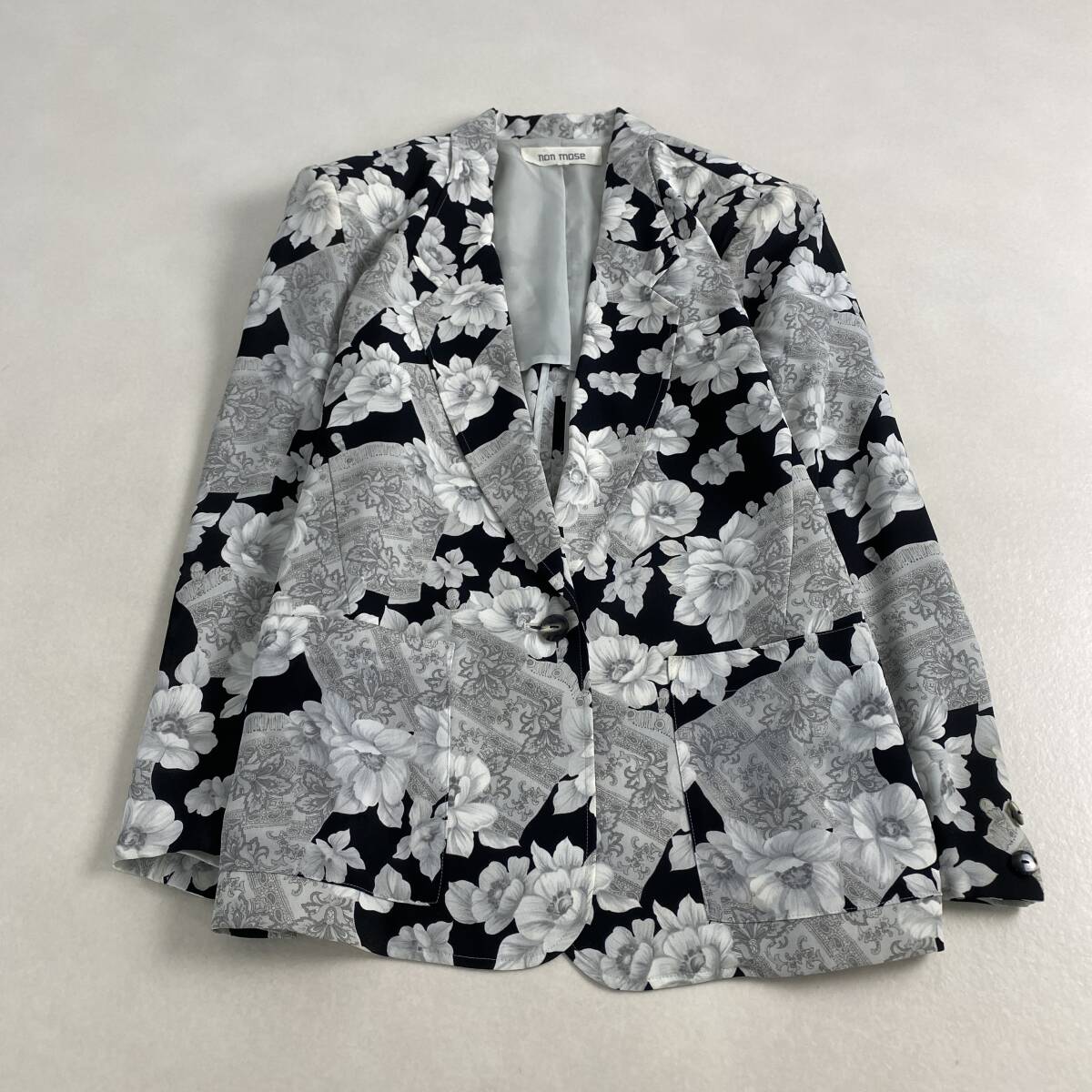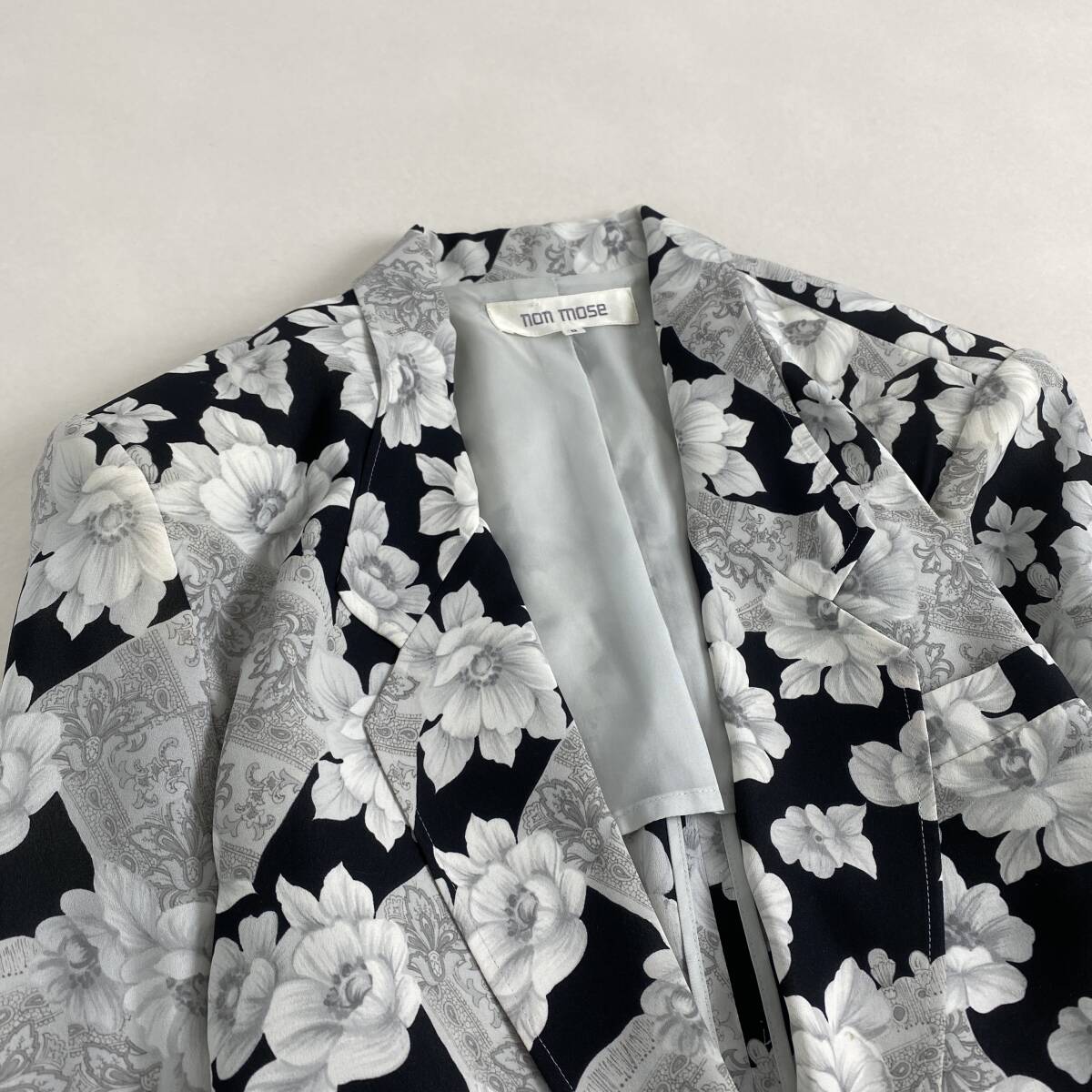 ヴィンテージ テーラードジャケット 花柄 ペイズリー 背抜き 春夏用 白 黒 9 M L相当