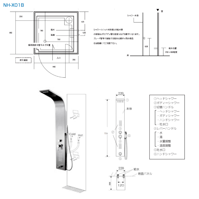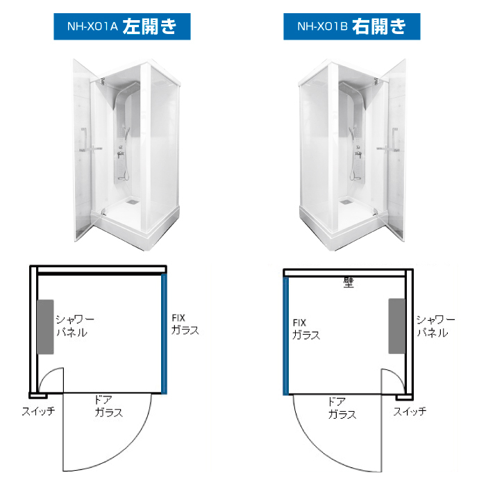 | NH-X01A(新モデル 左開きAタイプ) ハイグレードシャワーユニット |