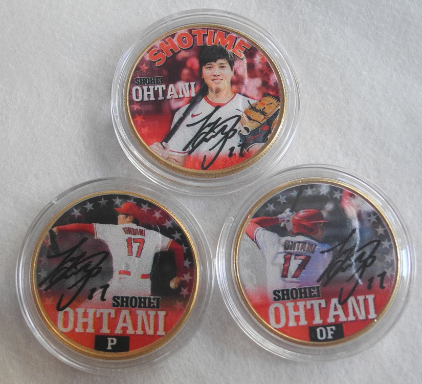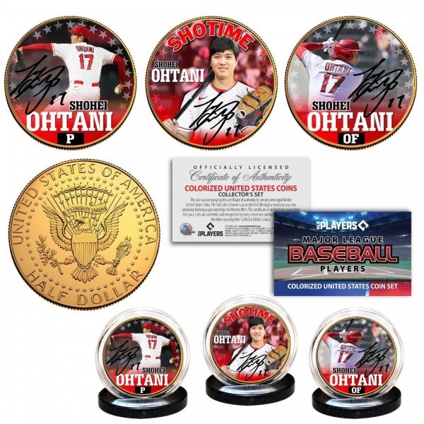 アメリカの限定ハーフダラー、大谷翔平の偉業を記念した3枚セットです。 24金メッキと&鮮やかなカラーが施されて、非常に豪華です。