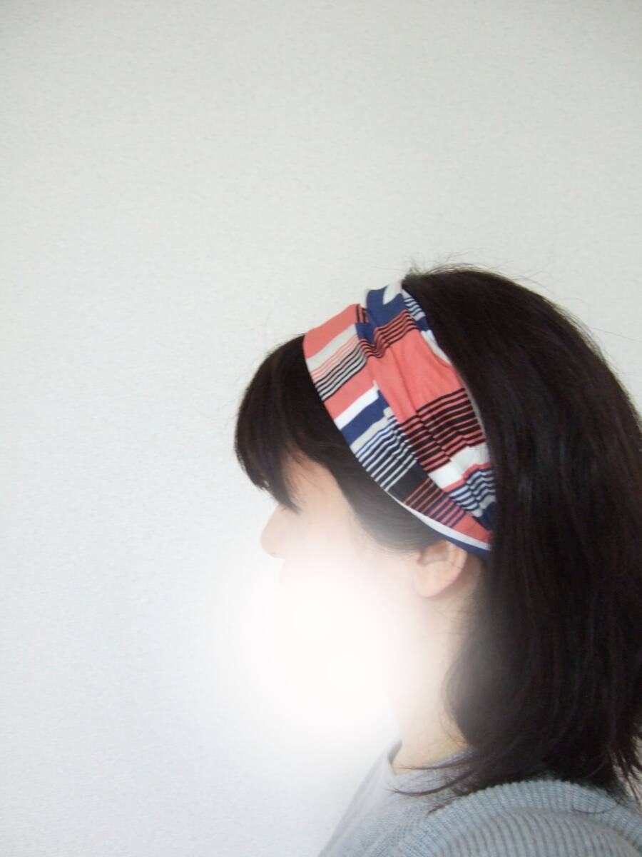 ★即決★ハンドメイド 配色がレトロ可愛い コットンゆるターバン**ヘアバンド 花粉症の髪よけにも 布在庫限り