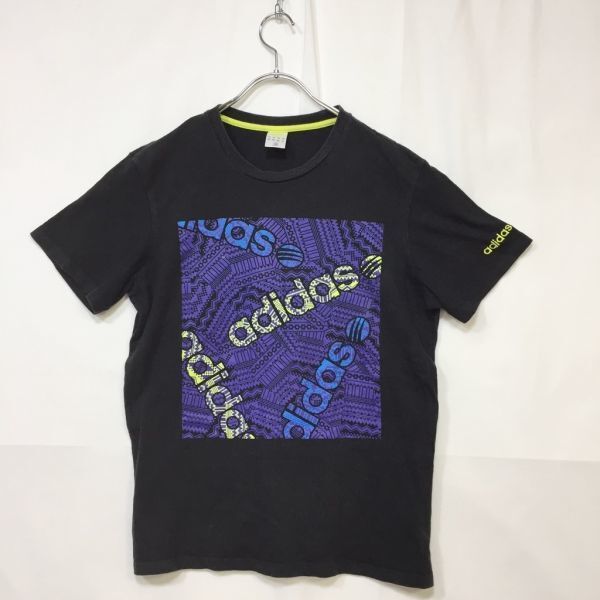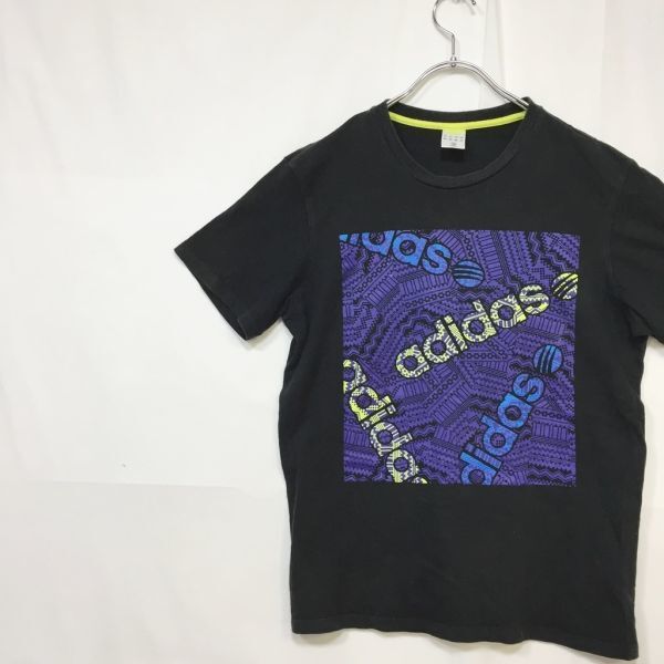 商品: Adidas/アディダス Tシャツ ロゴプリント ブラック/パープル サイズM
