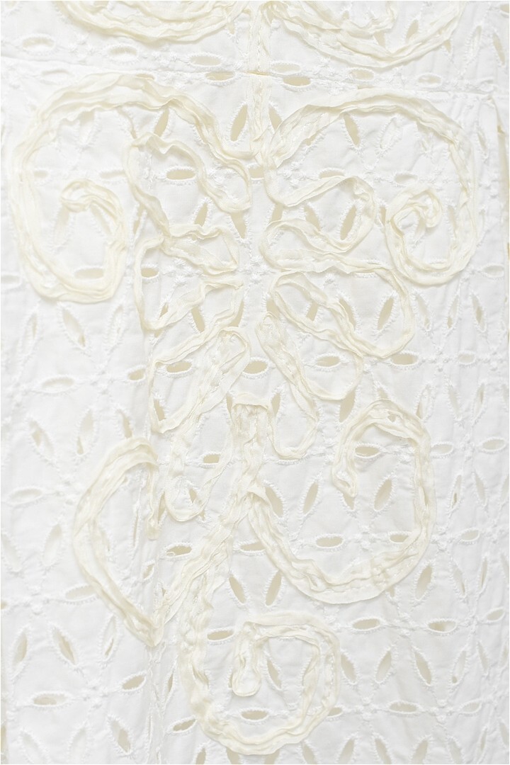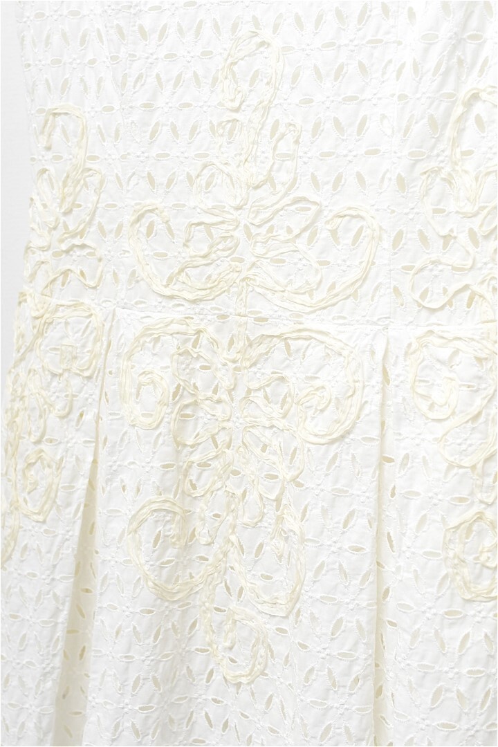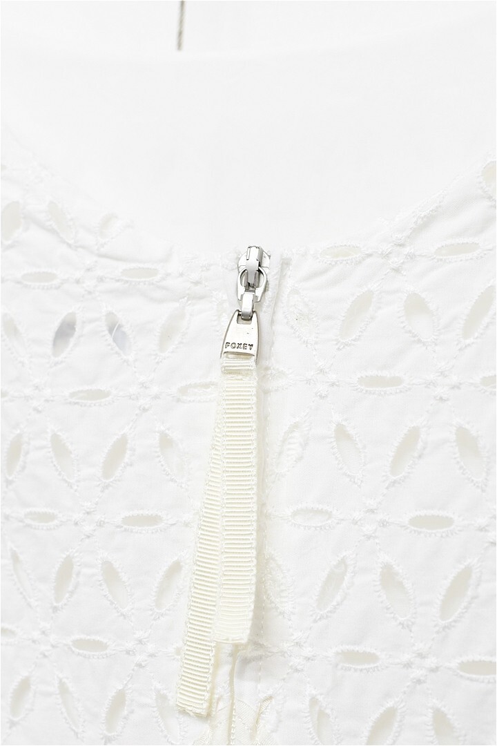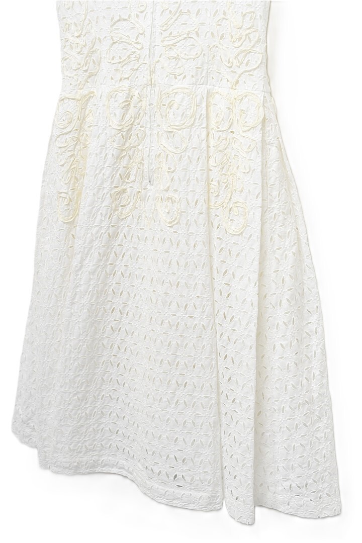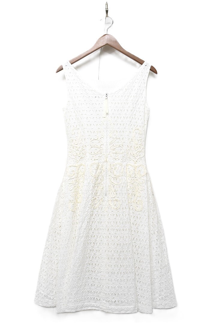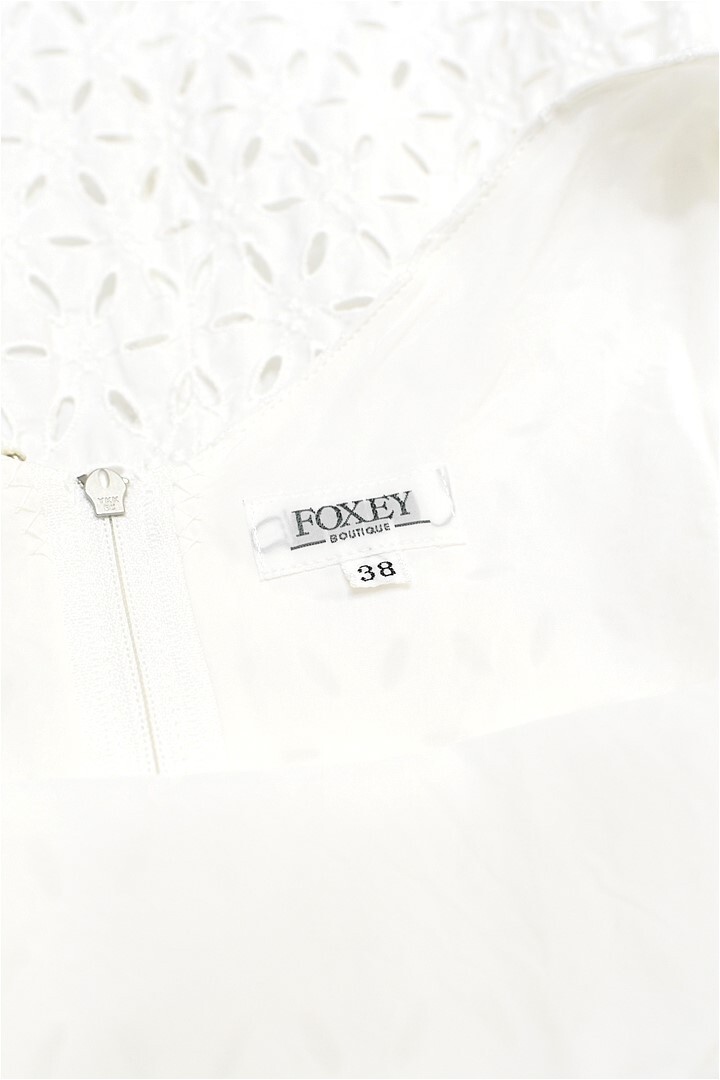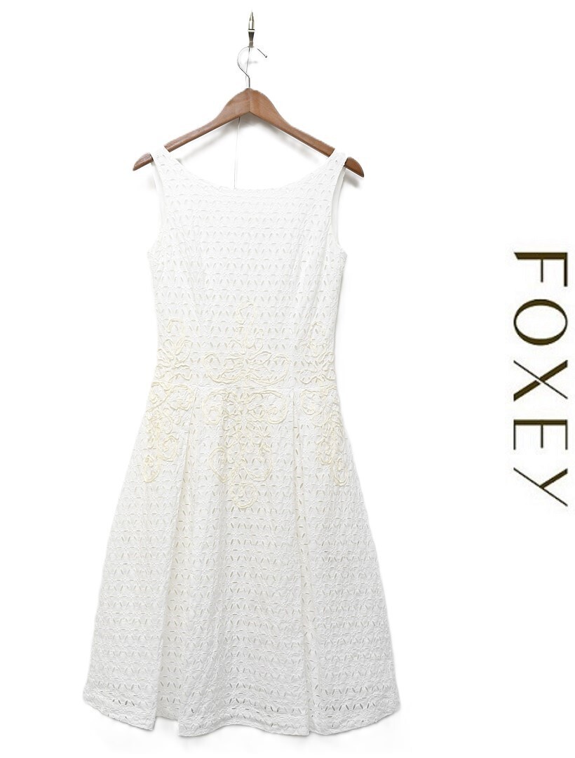 N401/FOXEY ノースリーブワンピース ドレス フレア 総柄 エンブロイダリー レース 38 S 白 春夏