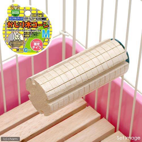 マルカン かじり木コーン M うさぎハムスターチンチラデグーヨウムオウムインコ歯の伸びすぎを防止かじれるトウモロコシ型のかじり木