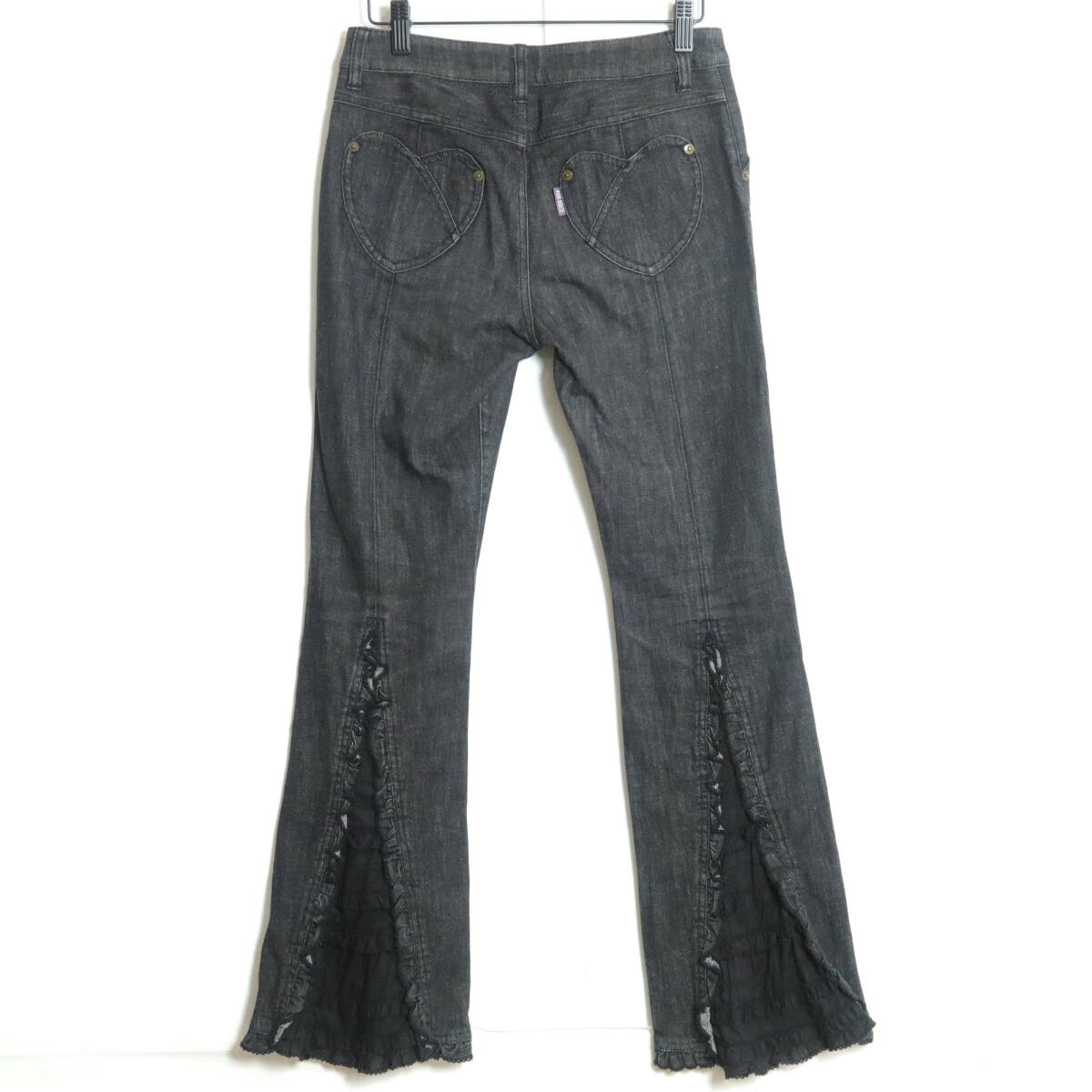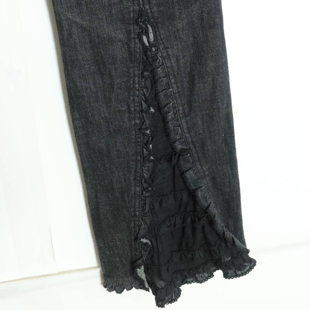 | 商品説明 | 【実寸約】ウエスト70太もも幅22.5股上25股下71(cm) 【サイズ表記】 S 【素材】綿95%ポリウレタン5% 【状態】使用感少なめの美品 【デザイン】黒系 裾の段々フリルとはしごレースが可愛いセミフレアジーンズです。 ハート型のポケットが可愛いです。 無地・織り |
