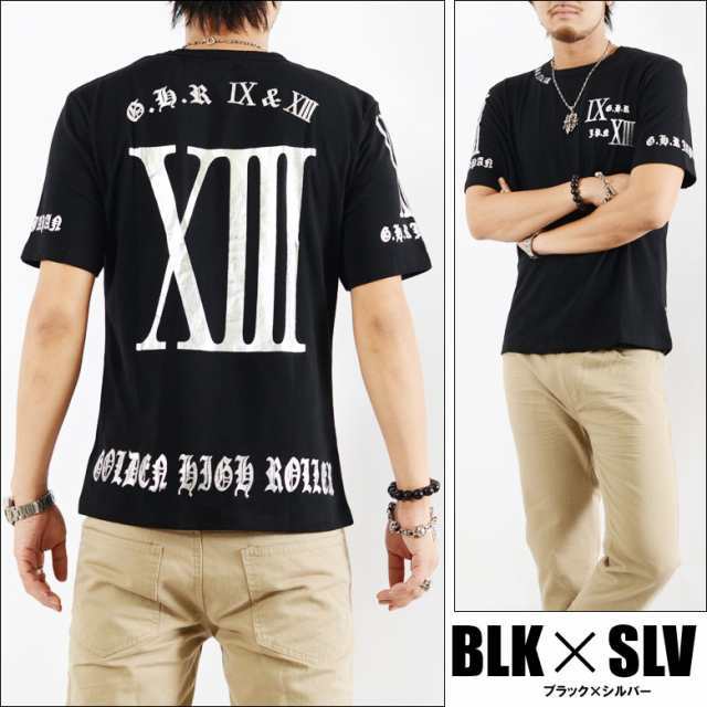 G.H.R NINE&THIRTEENバックサーティーンプリント半袖Tシャツ 70726 新品 ブラックxシルバー L