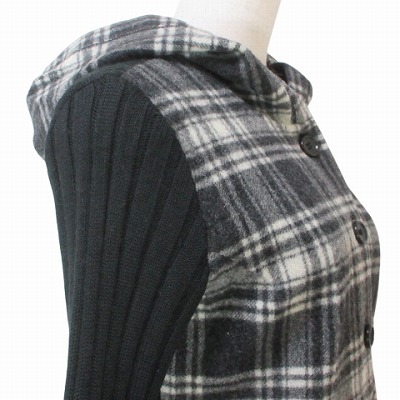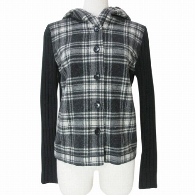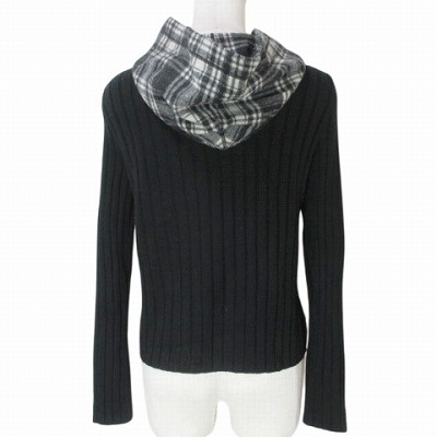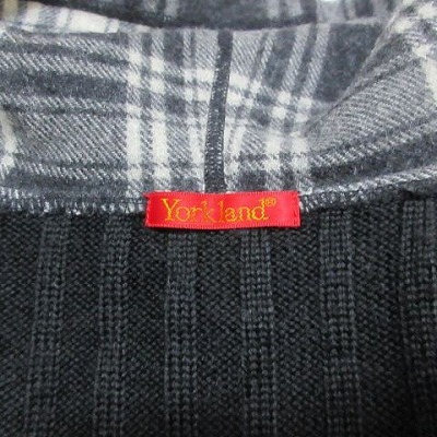 ヨークランド YORKLAND ニット ジャケット フード付き チェック ウール混 M 黒 白 X レディース