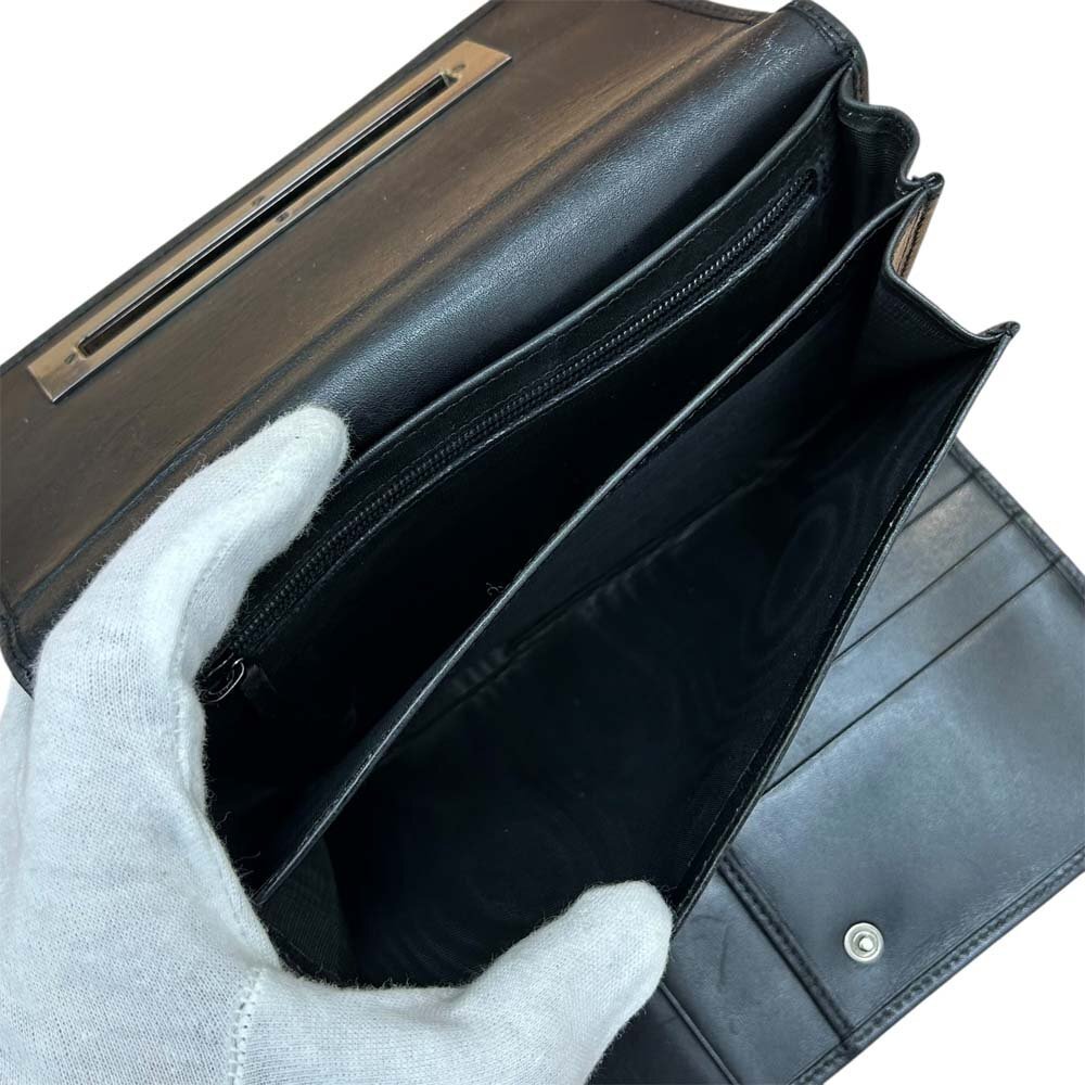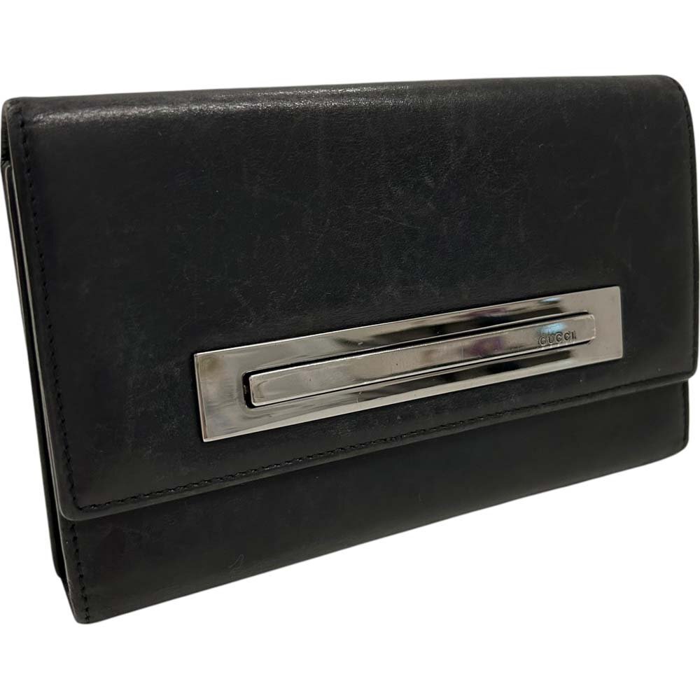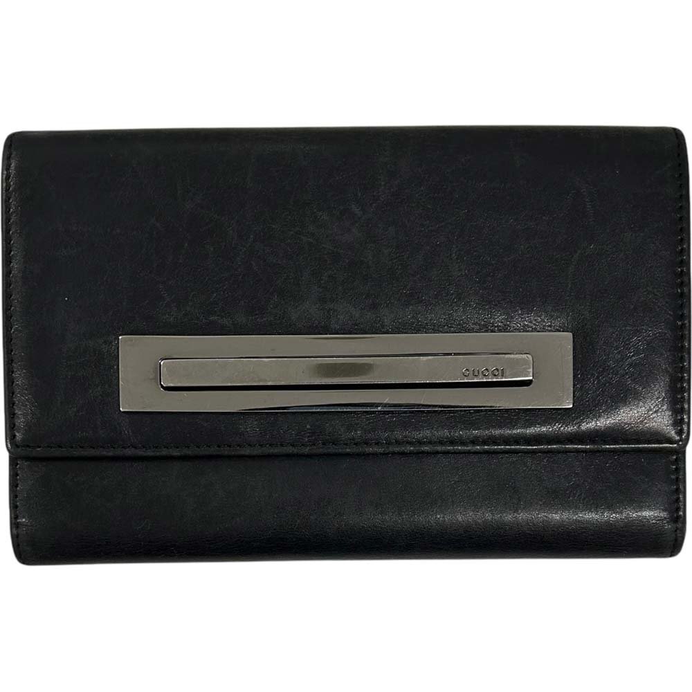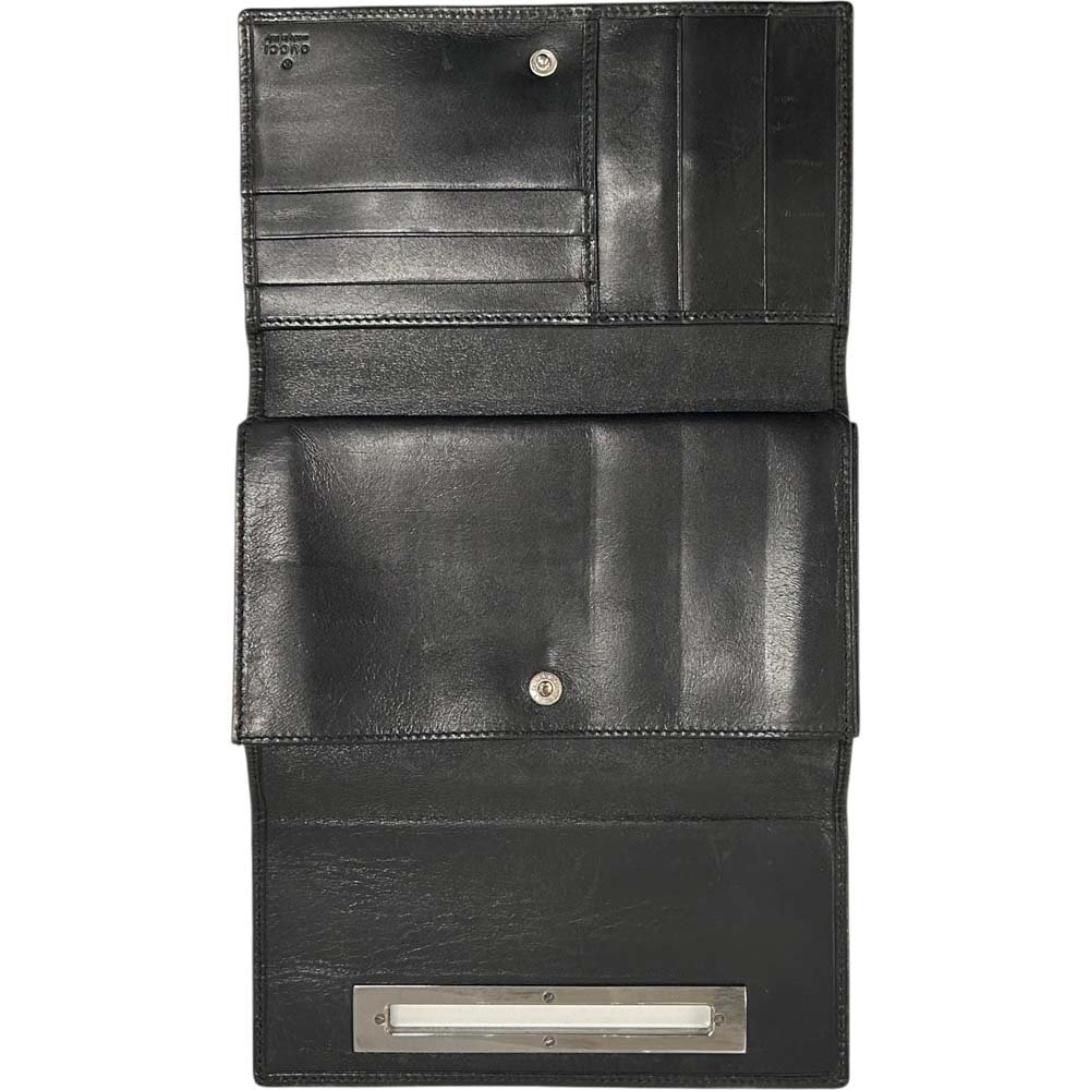 南店25-1414 グッチ 035.2888.2040 三つ折り財布 コインポケット フラップ開閉式 レザー シルバー金具 ブラック 黒系 レディース 女性用 | |