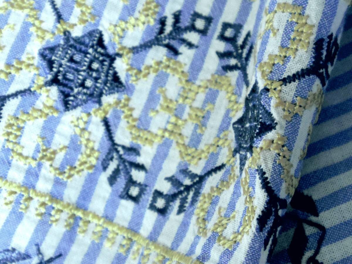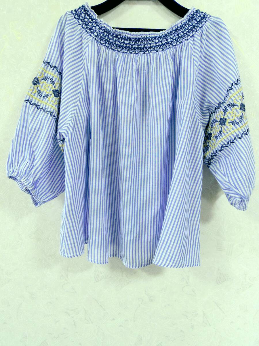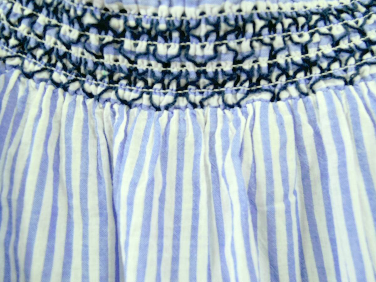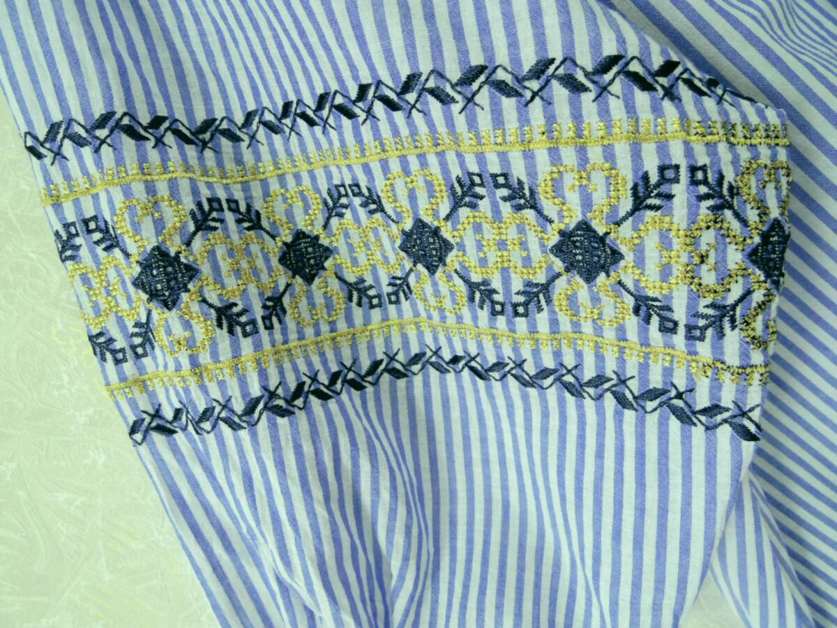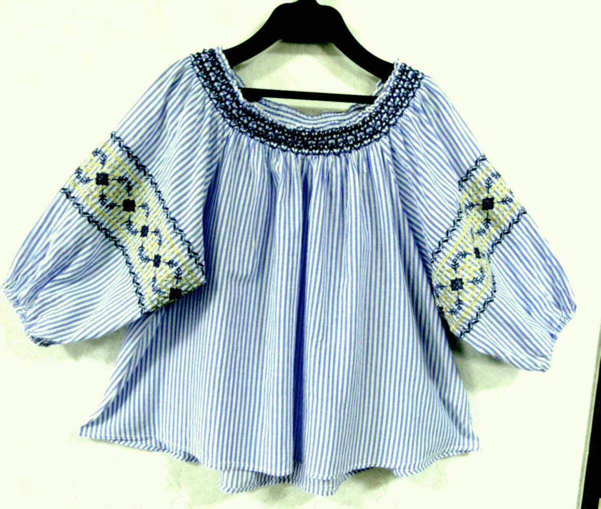 ニコアンドNICO AND... ブルー系ストライプと刺しゅうパフスリーブブラウス 中古 サイズ3 綿100%になります。