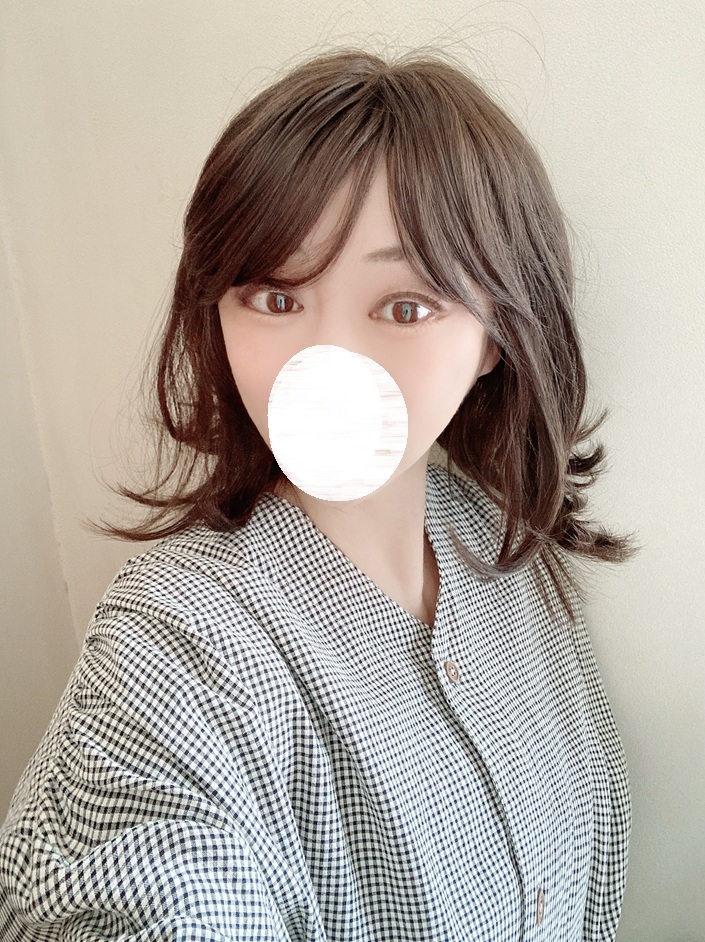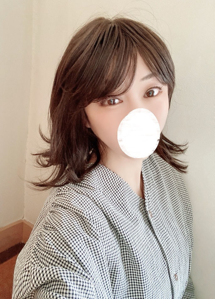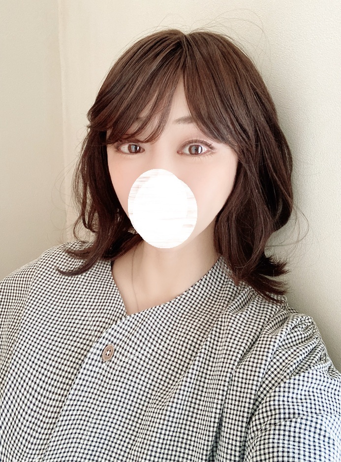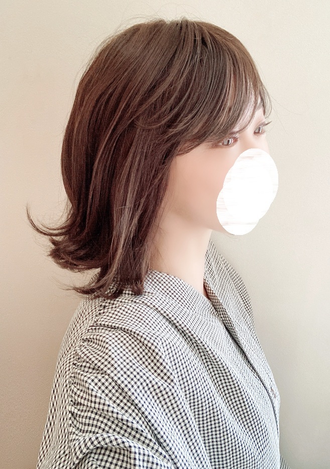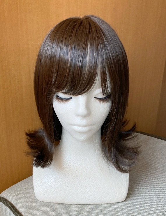 毛先重ためなミディアムウィッグは、柔らかく女性らしい印象になります。