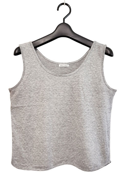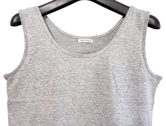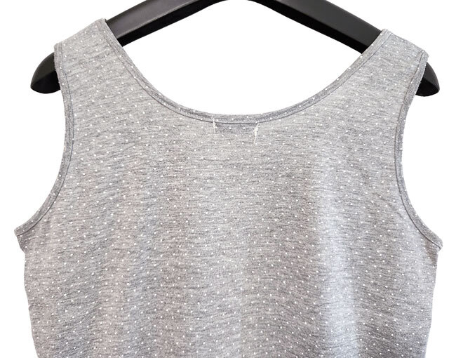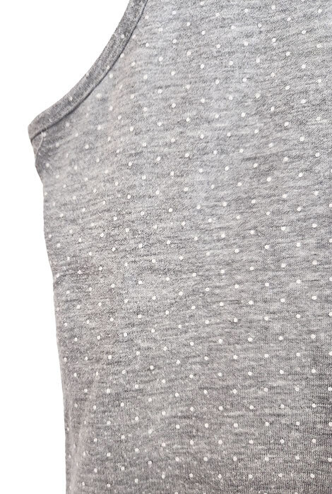 薄グレー色に細かい水玉柄のノースリーブカットソーです。