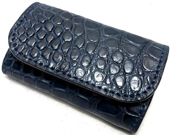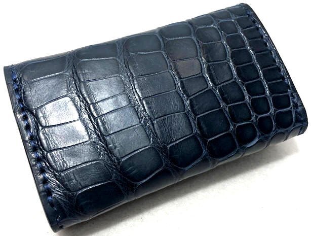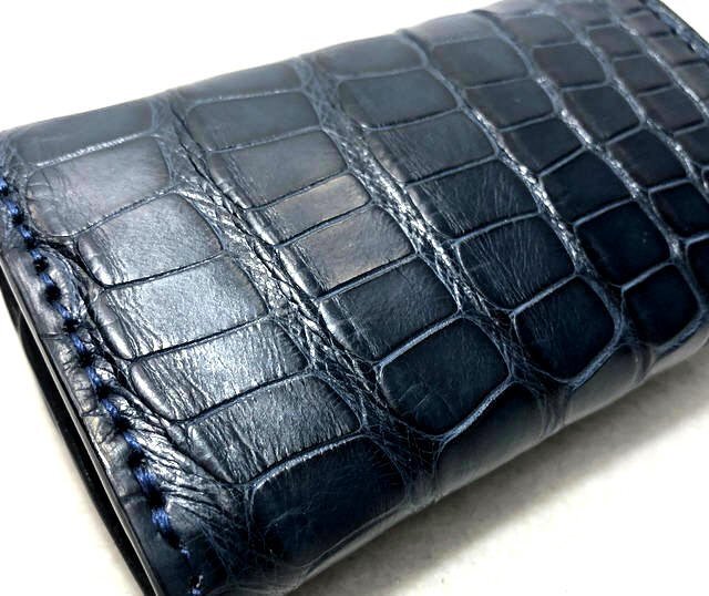 色は綺麗な「ネイビー(アリゲーター)×ブラック(ベース)」、使用を重ねるごとに革表面には上品な艶が現れ色味が増し、とても雰囲気が良くなります!
