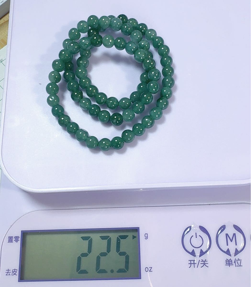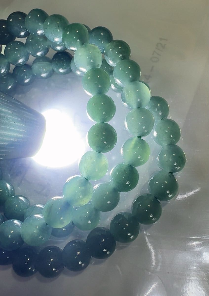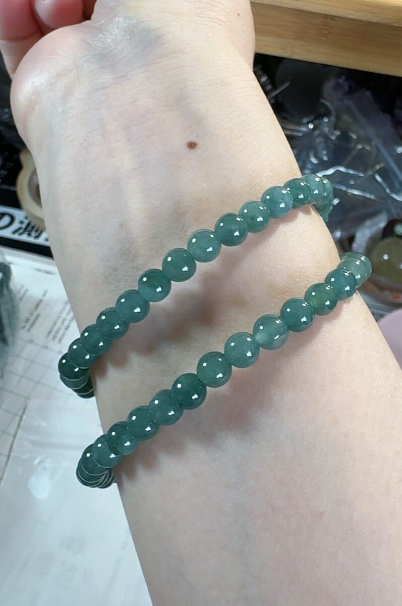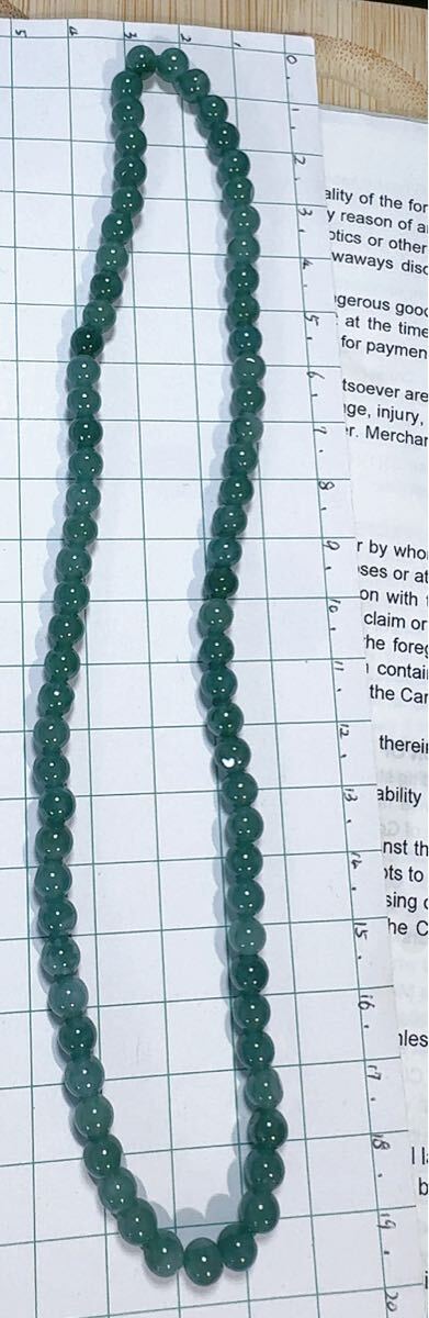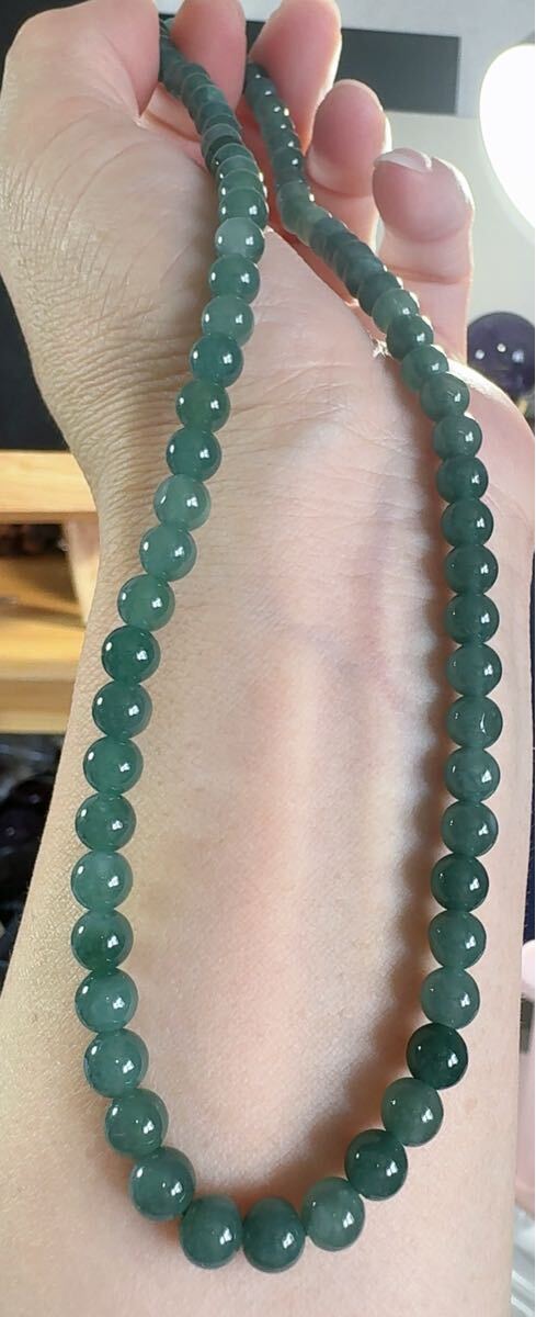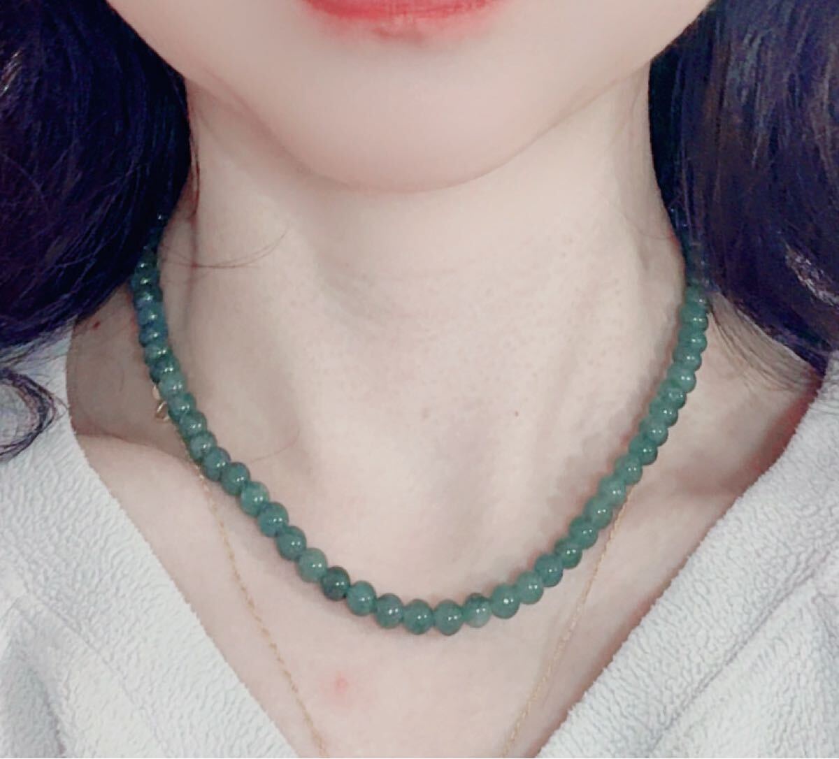 R2-01009天然本翡翠 藍水《本物保証》 ネックレス約40cm 天然石5.6mm 宝石 一点物 希少 縁起物 お守り パワーストーン