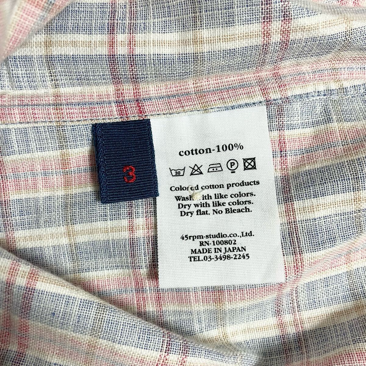 即決☆45rpm フォーティファイブアールピーエム プルオーバー チェック シャツ 3 美品 L