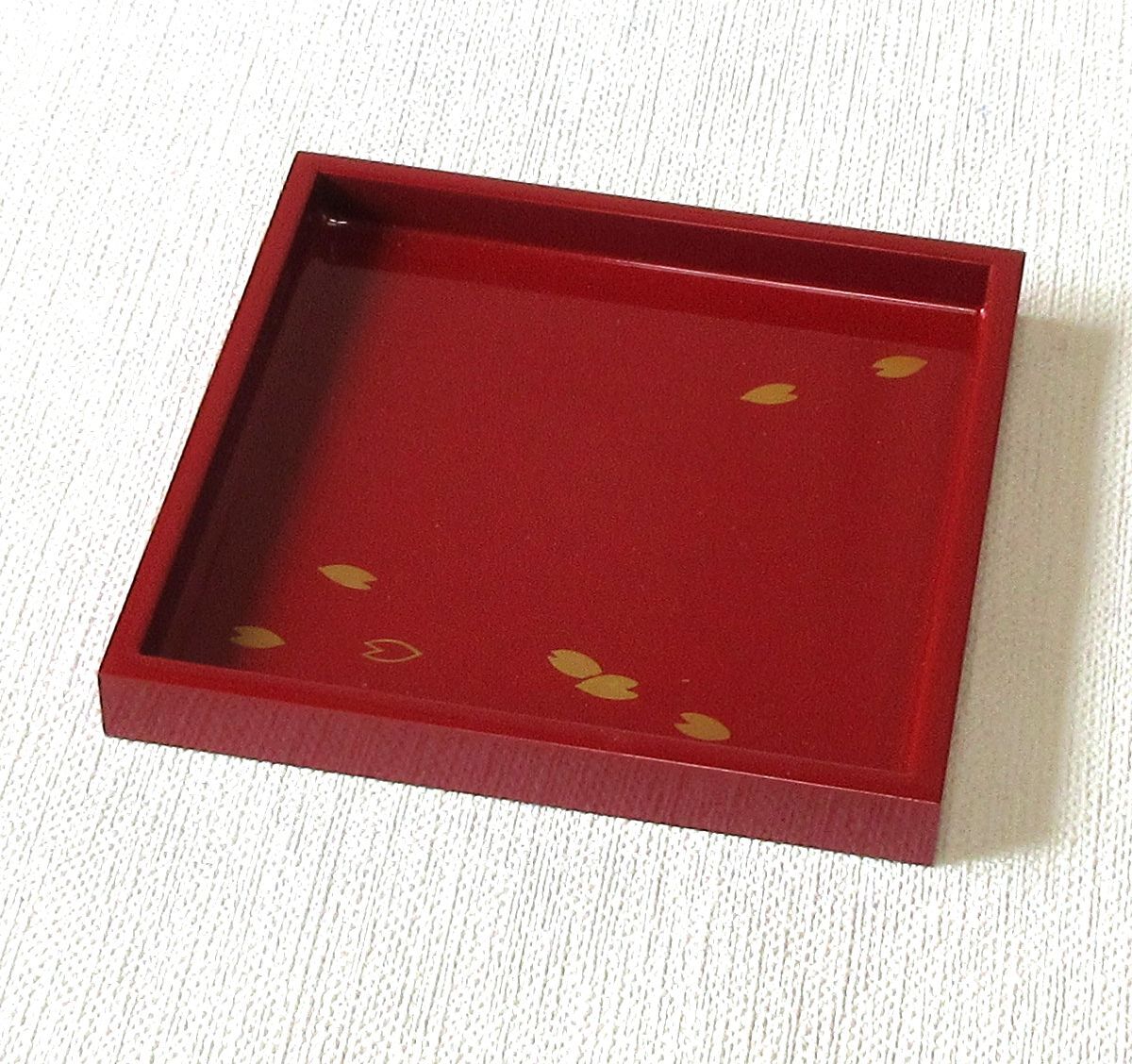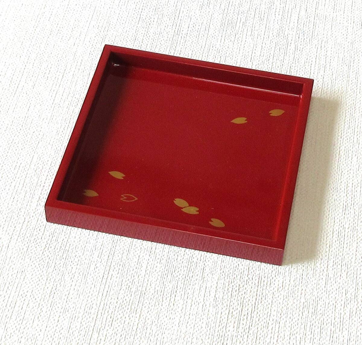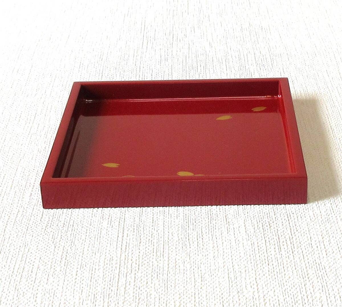 ★シンプルな桜の蒔絵♪★会津塗木製角皿 朱塗 さくら蒔絵★送料無料 | ||||