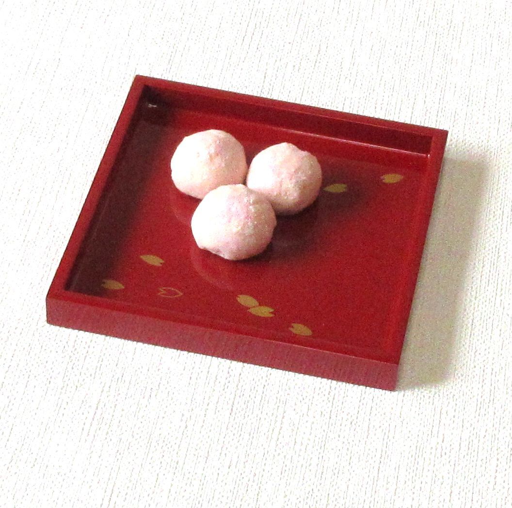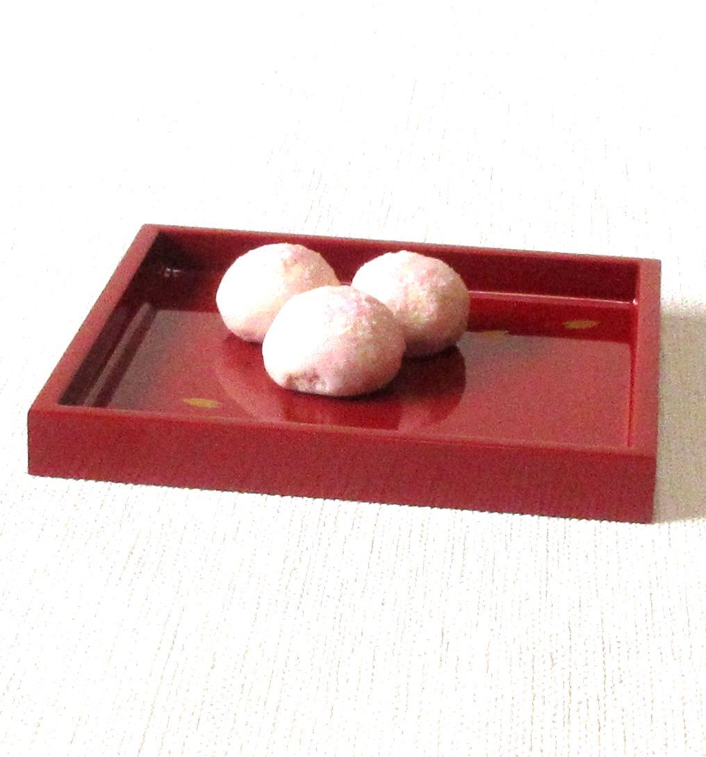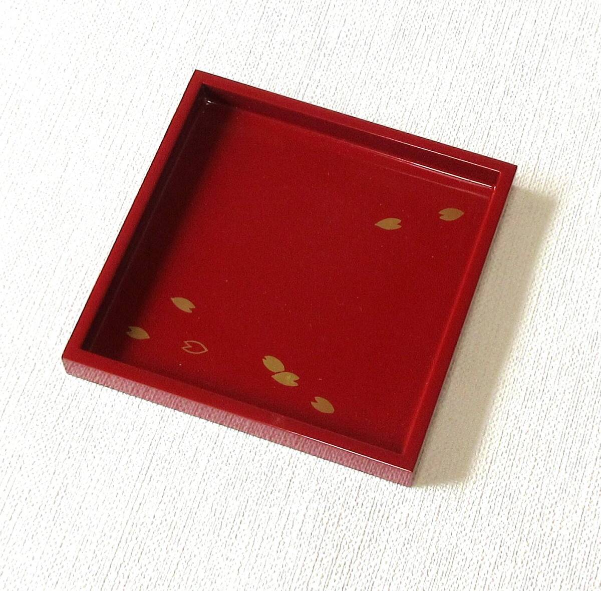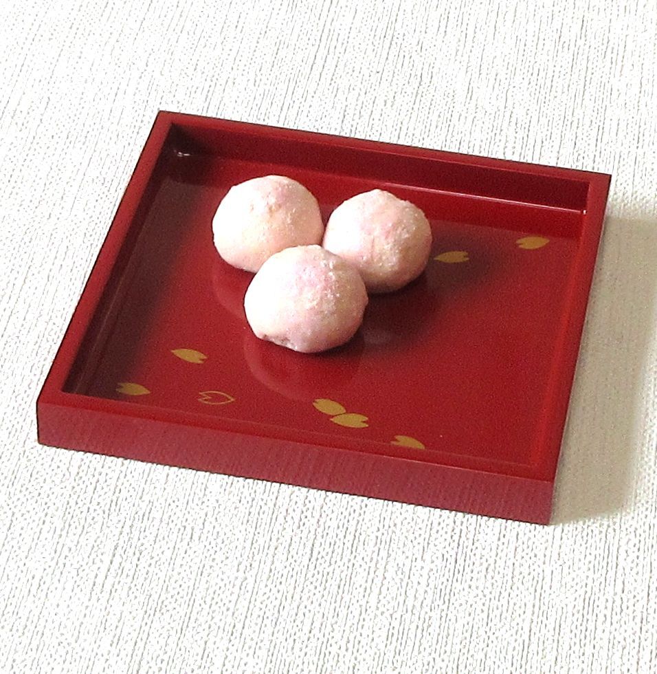 ★シンプルな桜の蒔絵♪★会津塗木製角皿 朱塗 さくら蒔絵★送料無料 | ||||