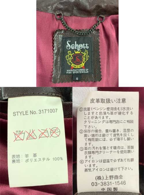 Schott CLASSIC RACER シングルライダース レザージャケット サイズ : S/アメカジ 店頭/他モール併売《メンズ古着・山城店》U521