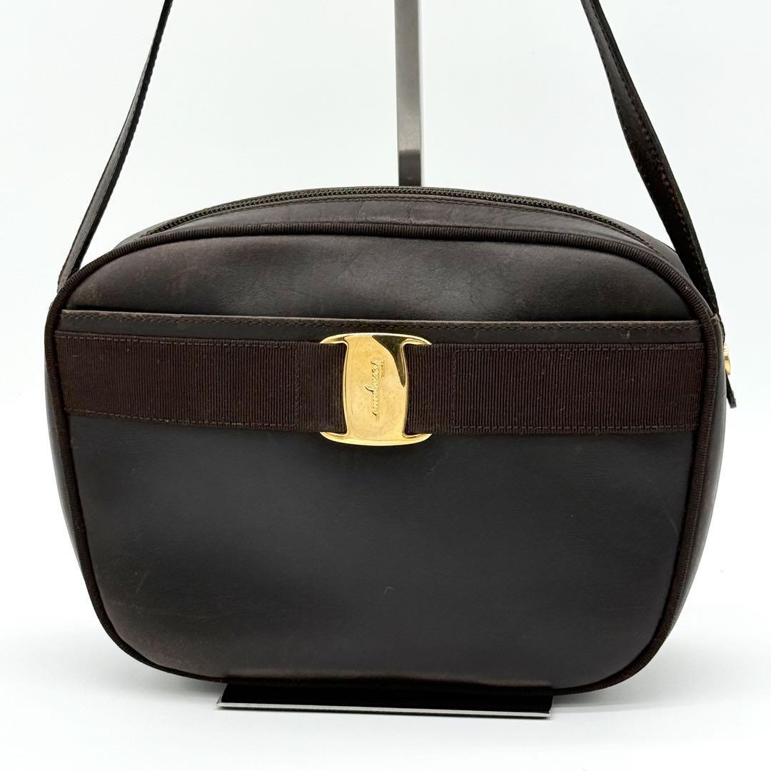 【良品】Ferragamo フェラガモ ヴァラ カメラバッグ サコッシュ ショルダーバッグ 斜めがけ クロスボディ ヴィンテージ ブラウン DH220420C