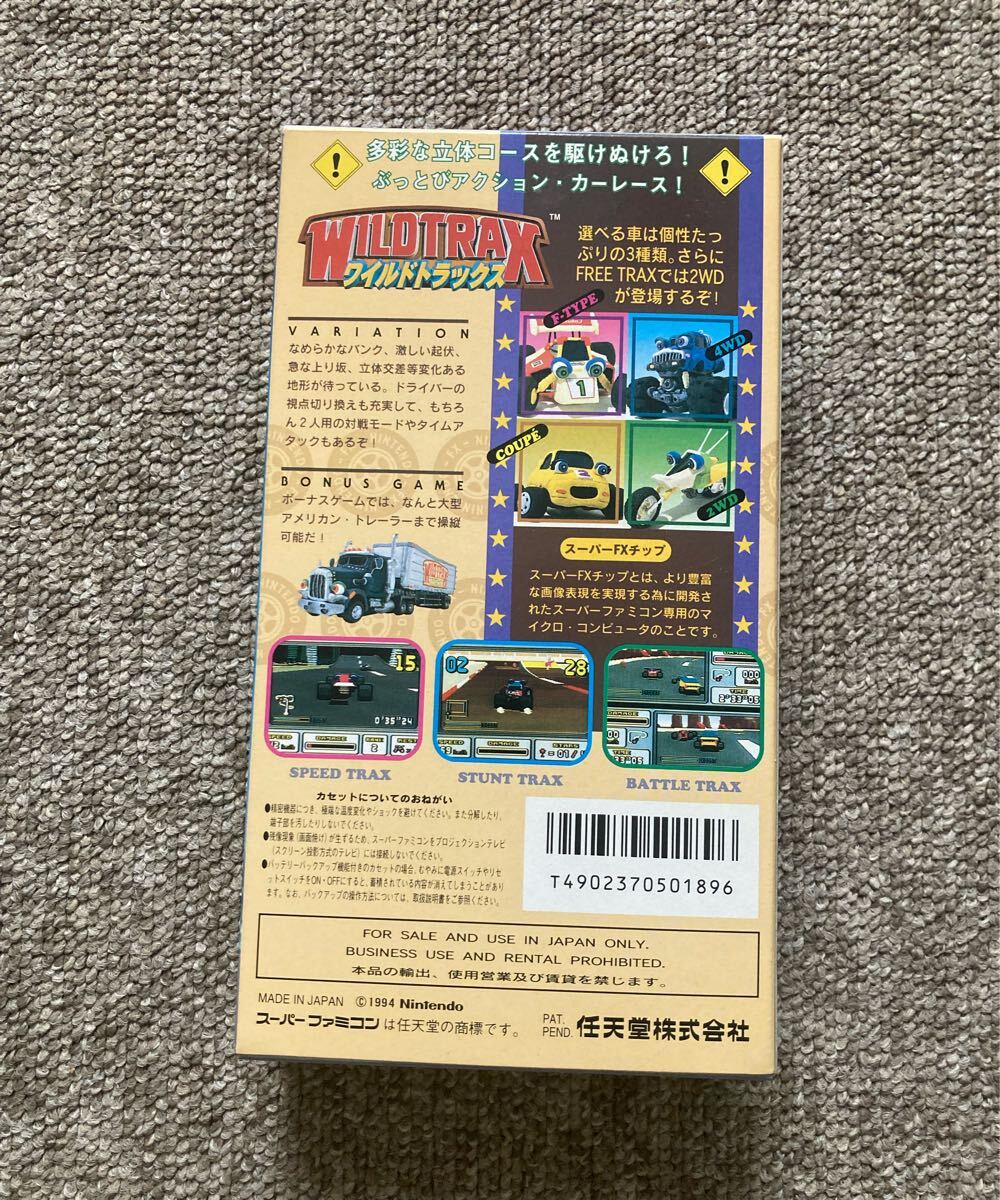 Nintendo/スーパーファミコン/ワイルドトラックス/カーレース/SHVC-CQ/ 任天堂/ゲームソフト/取扱説明書付き/動作未確認/スーファミ