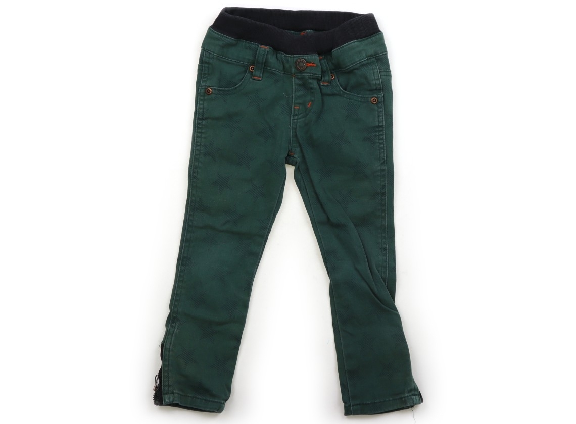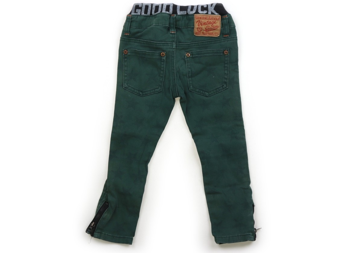 コットン・ポリウレタン素材。ウエストは総ゴムです。裾ジップあり。ブランドタグに記名跡あるため、星を一つ減らしています。小さな汚れがいくつか見られ、全体に色あせ・毛羽立ちがあります。