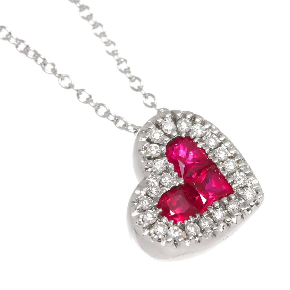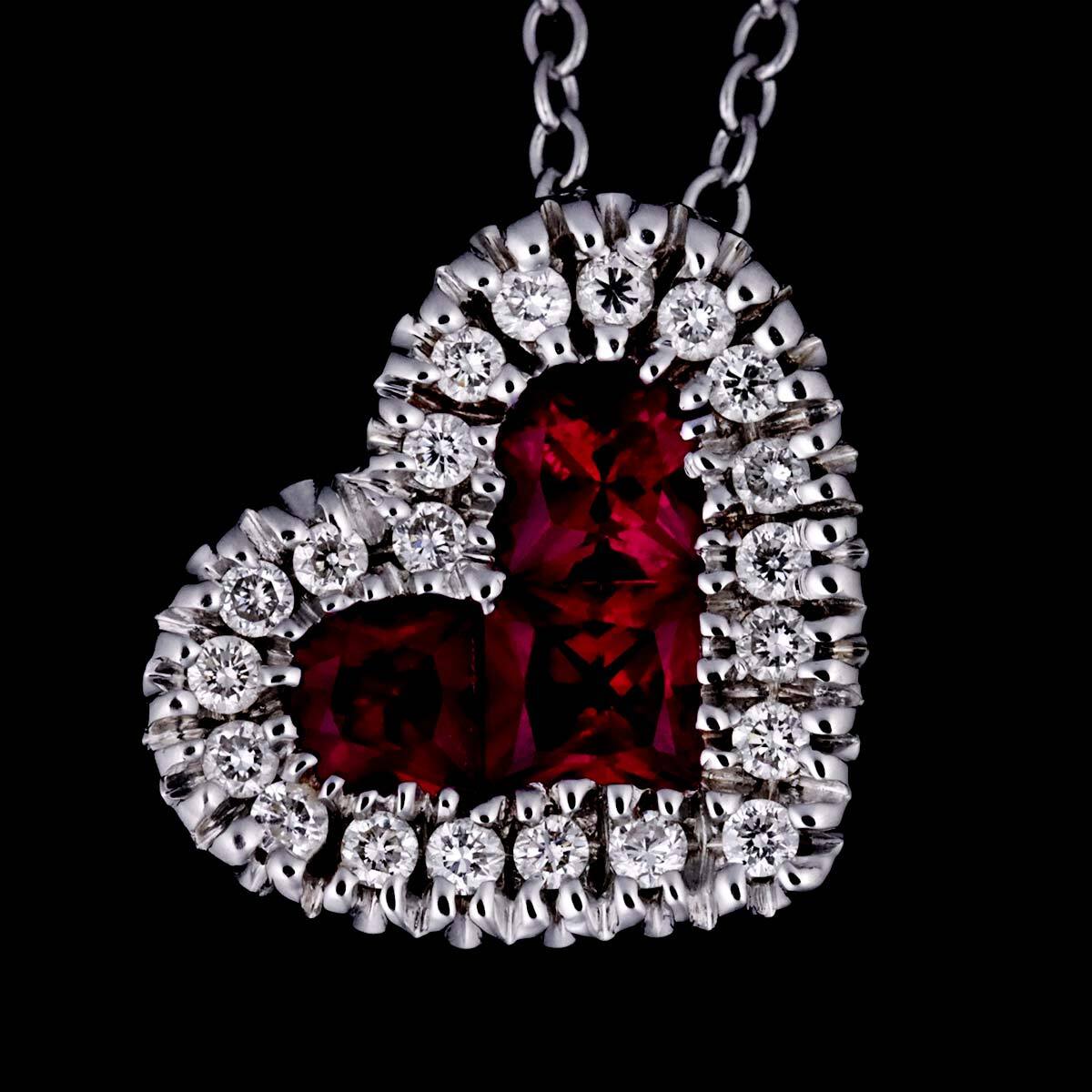商品概要 | ポンテヴェキオからハートモチーフが可愛らしいネックレス です。ホワイトゴールドにルビーとダイヤの輝きが胸元を上品に演出してくれます。 |