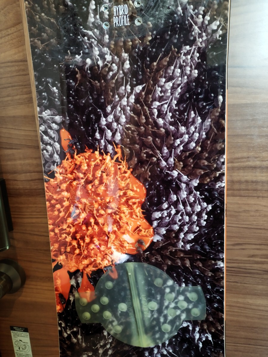 フラットアウトキャンバーのツインチップでヨーロッパ製の中密度のファイバーグラスを使っており、フレックスはソフトながら、かなり反発のあるモデルです。