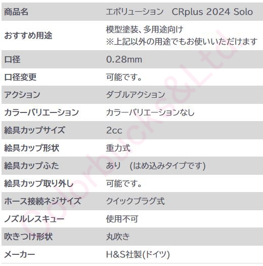 Airtex エアテックス EVOLUTION CR plus 2024 Solo 0.28mm エボリューション CR プラス 2024 ソロ H&S社製(ドイツ)エアブラシ | ||||||||||||||||||||||||||||