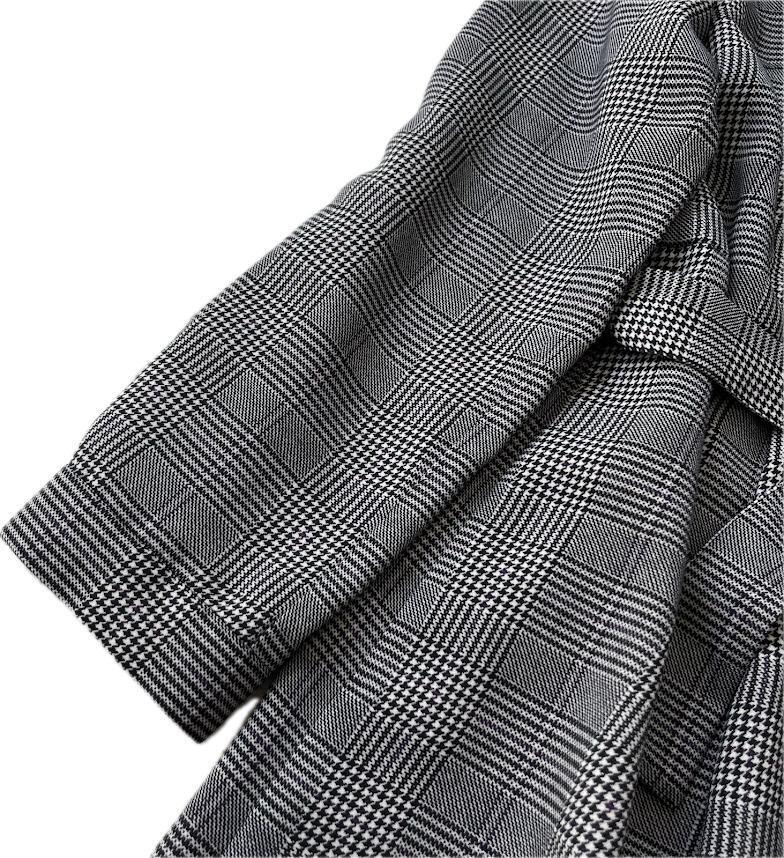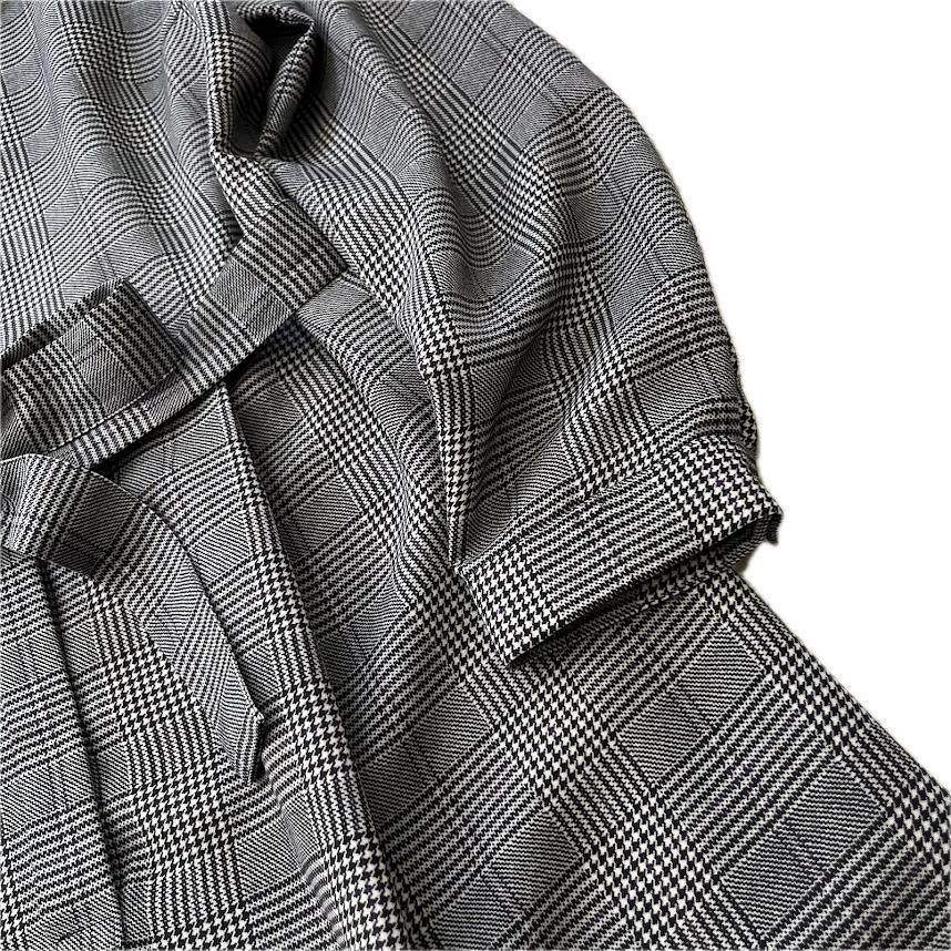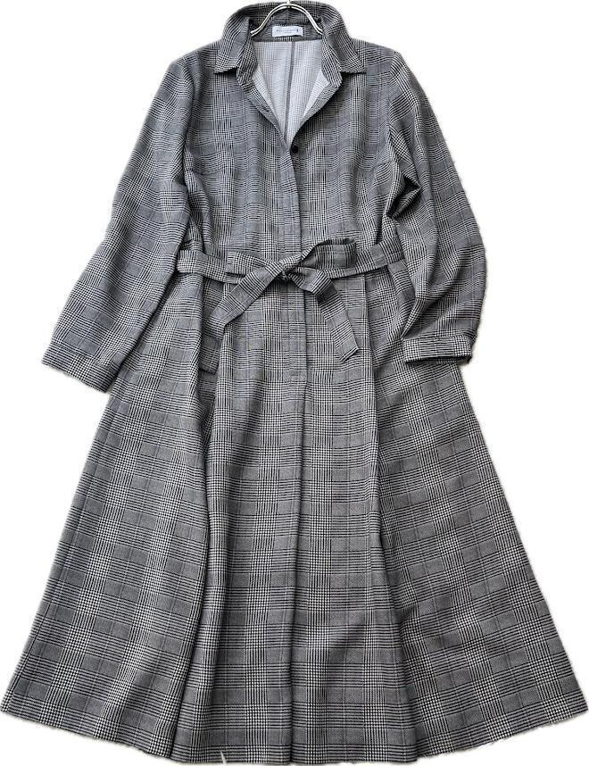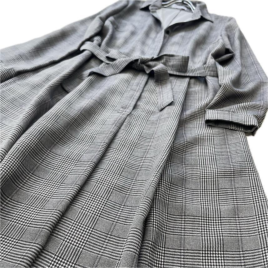 長袖 Aライン 千鳥格子柄 チェック ロング丈 マキシ丈 グレー系 ゆったり ウエストベルト リボン カジュアル パーティー 旅行 レディース 40