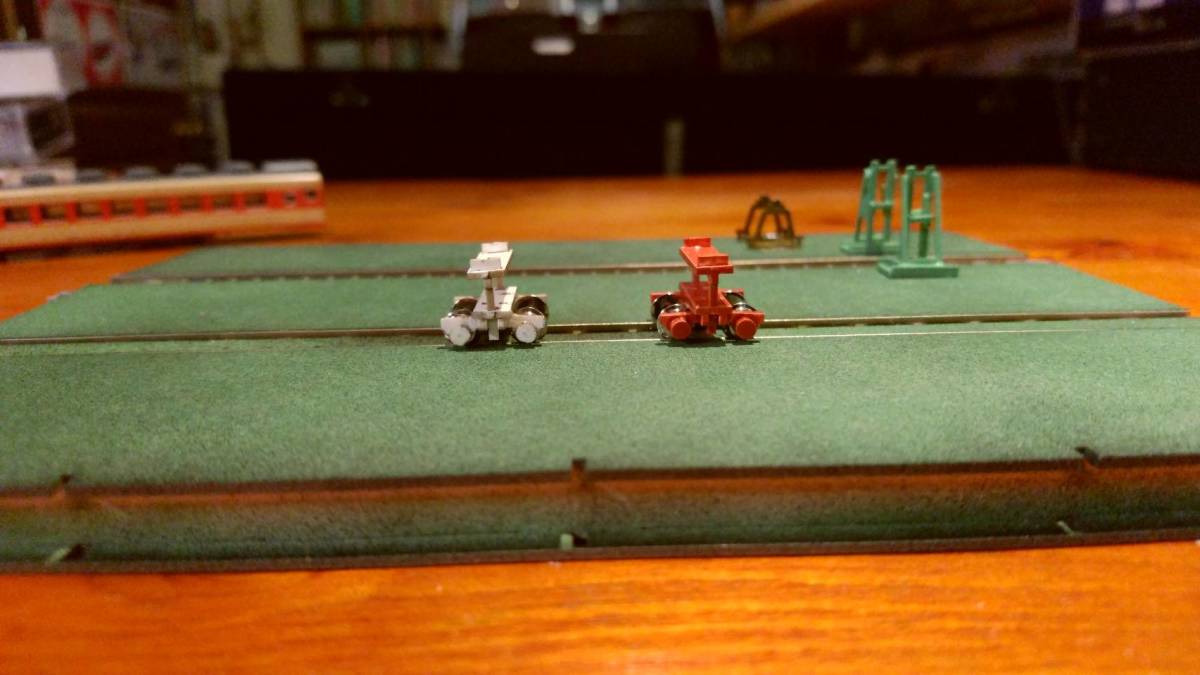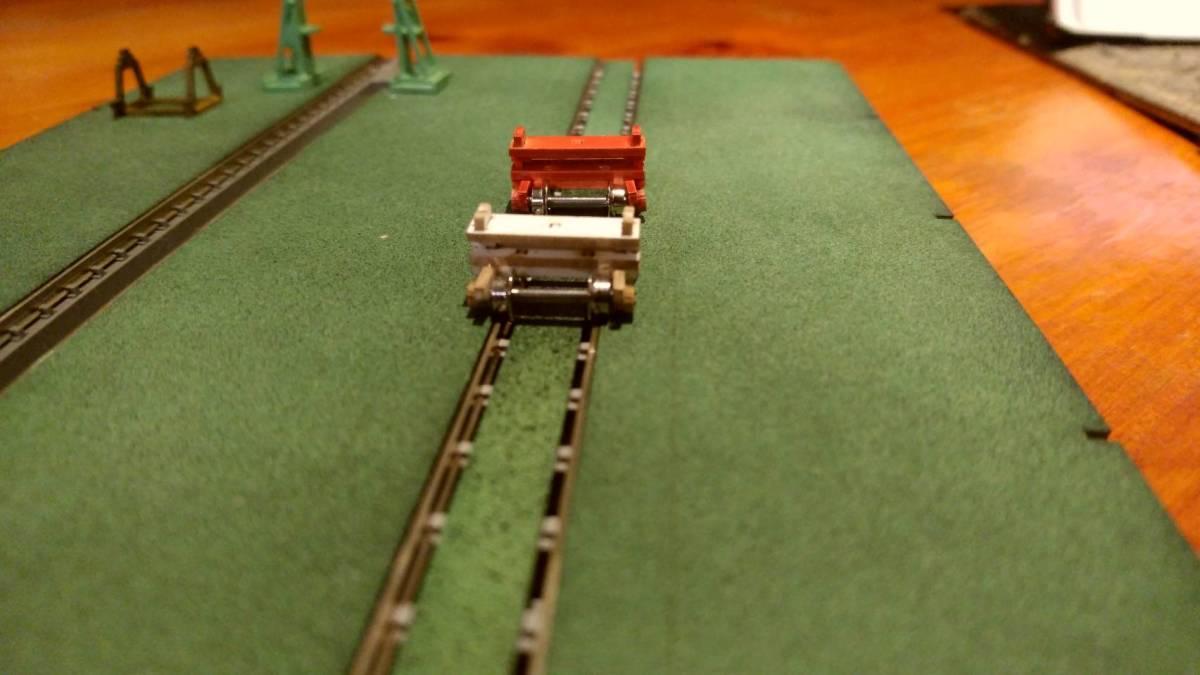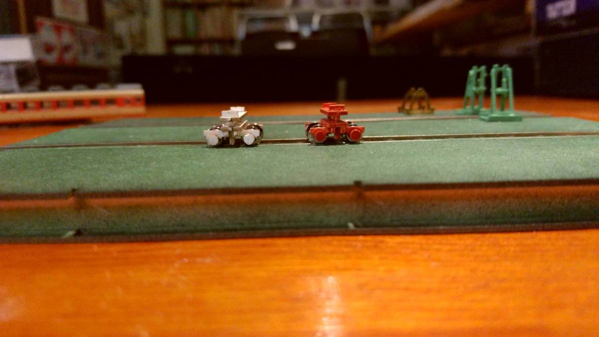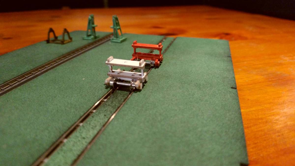 Nゲージの仮台車2号 2台セット(4mm車輪付き)のレーザー切り抜き済みペーパーキットです。