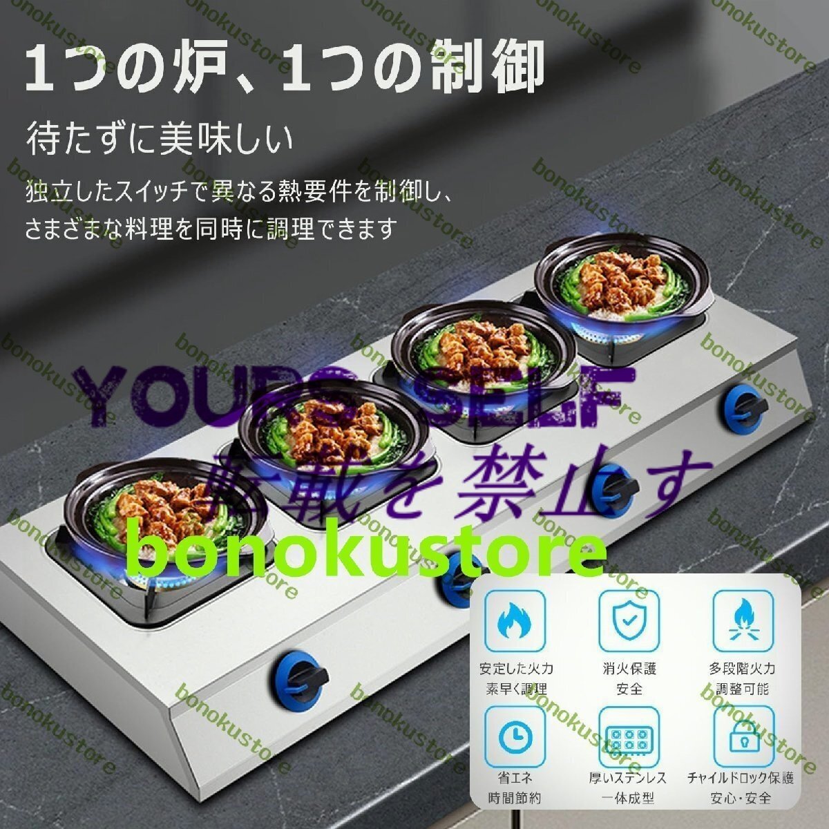 土鍋天然ガスストーブ 業務用 2/3/4バーナー 多穴マルチストー 消火保護装置 天然ガス液化ガスストーブ 低圧 高火力 土鍋ストーブ バーナーガスストーブ 家庭用ガス炊飯器 お手入れ簡単 ガステーブル 2列4口コンロ 液化ガス