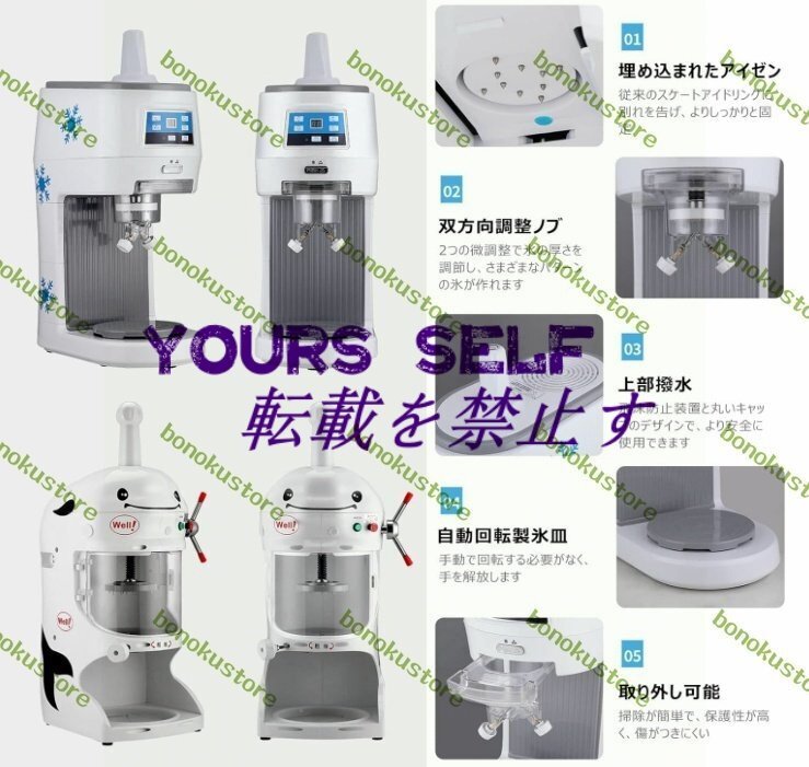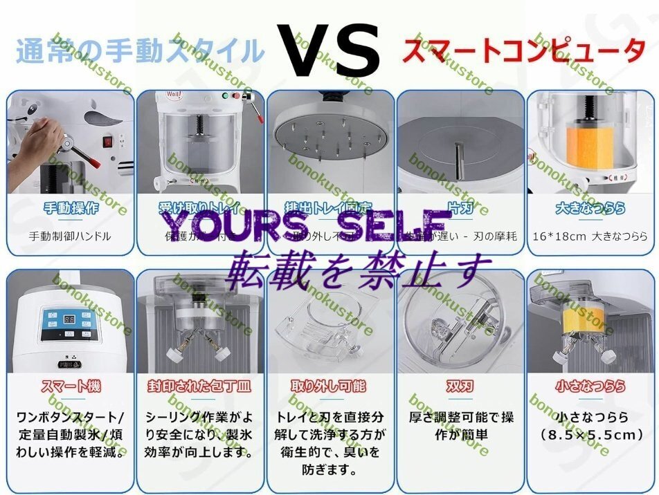 商品の説明【高品質のセールスポイント】マイコン制御厚さ調整可能タイミングと定量的取り外し可能でお手入れ簡単パワフルで静か【サイズ】モーター速度: 250-320r/分電力: 350W容量:2.4kg出力: 90kgs/h電流: 2.7A電圧:110V/60重量:17.9kg【重要事項】仕様をご確認の上ご購