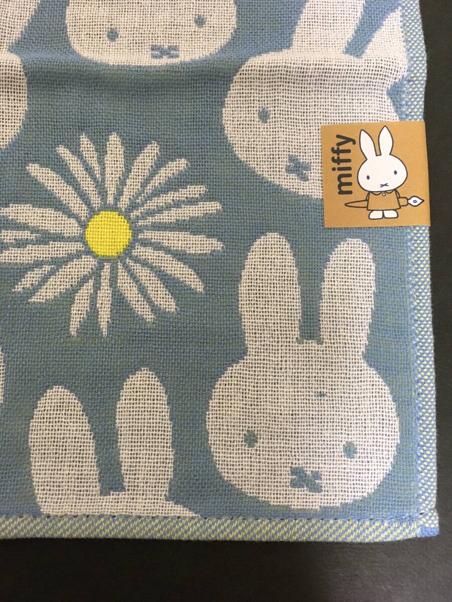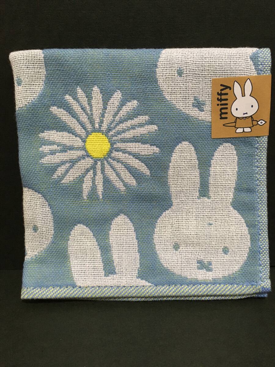 miffy/ミッフィー フェイスおはな サックス色の3重ガーゼハンカチです☆彡