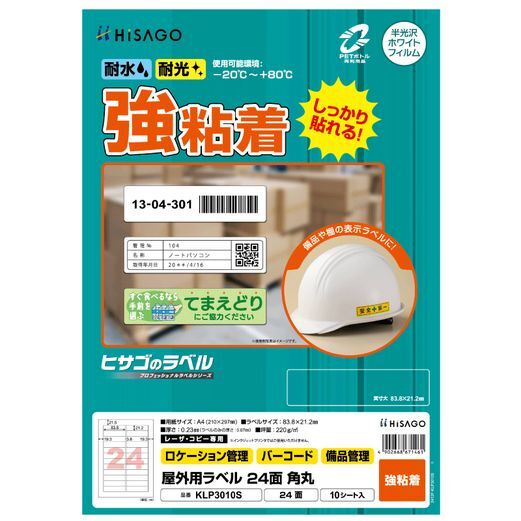 ○水・光・温度変化に強く破れにくい、屋外での使用に適したラベルです。