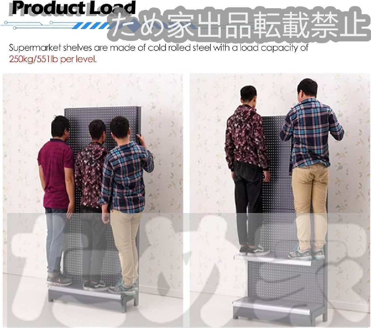【冷間圧延鋼製スーパーマーケットラック】: 厚みのある冷間圧延鋼構造、防水/防錆、色落ちなし。 安定していて揺れません。 そのため、この収納ラックは商品を吊り下げて展示することができます。 単層耐荷重250KG/551LB。