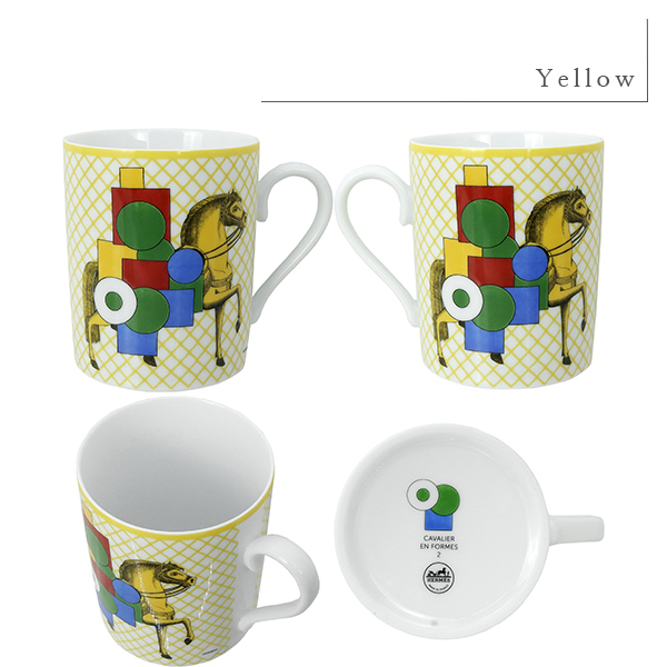 | スタッフコメント | エルメス人気のテーブルウェア【カヴァリエアンフォルム】シリーズ。キューブと鮮やかな色彩で表現された騎手のシルエットがマグを彩り、カラフルでグラフィカルな模様がアクセントとして際立つ、著書『不在の騎士』へのオマージュとして製作された逸品。ギフトやプレゼントにもおすすめの逸品です。 |