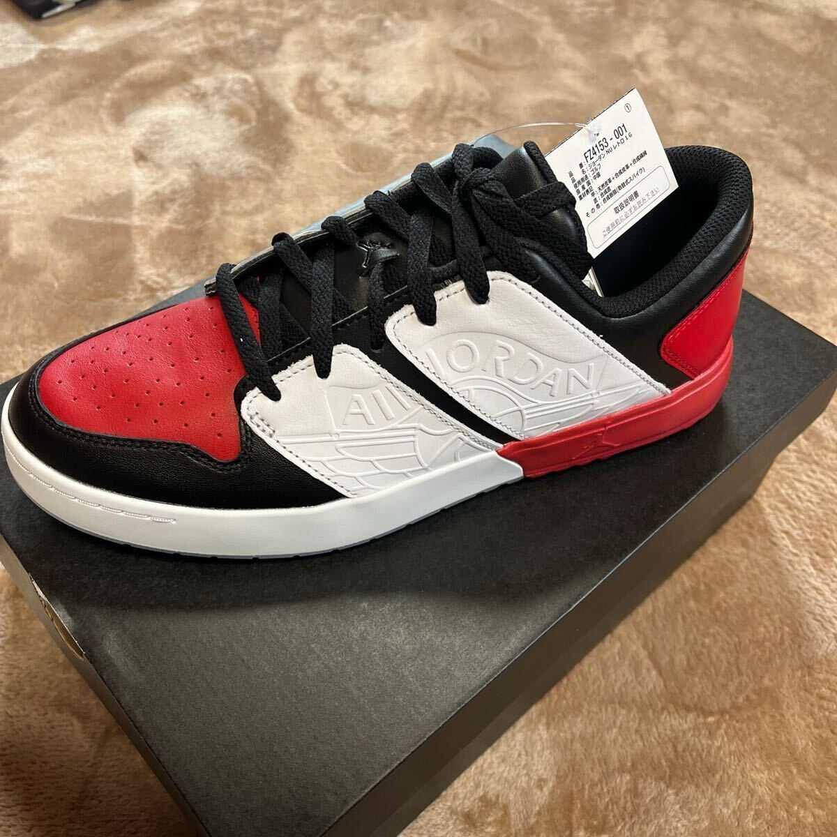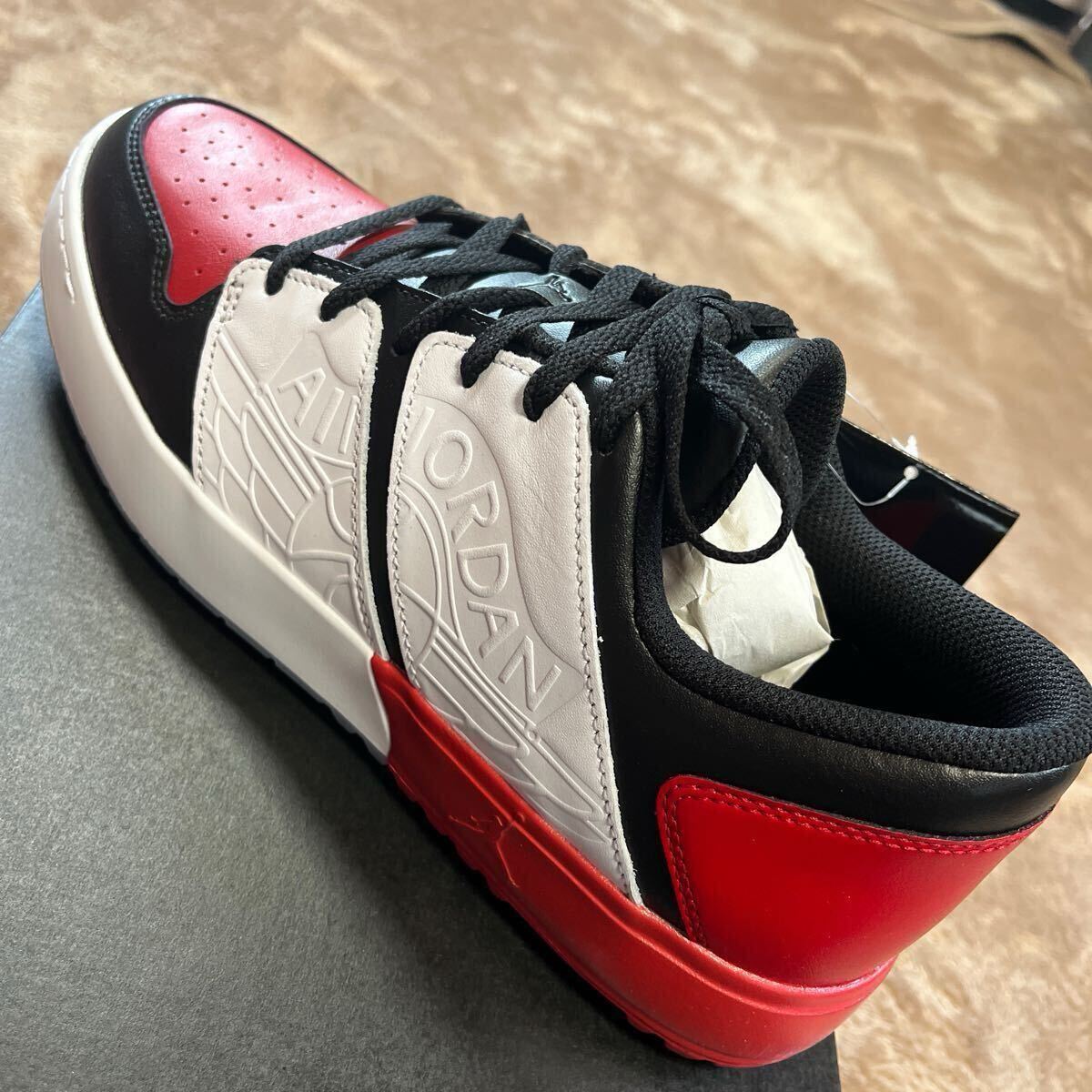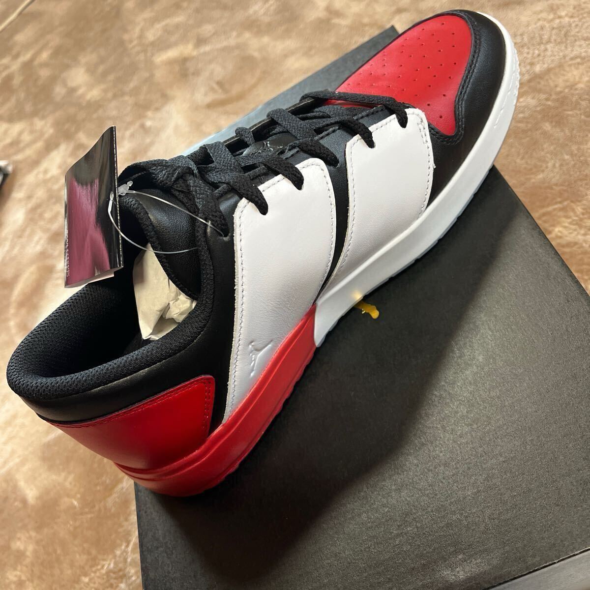 サイズは28.0cm、カラーはホワイト×ブラック×レッドです。